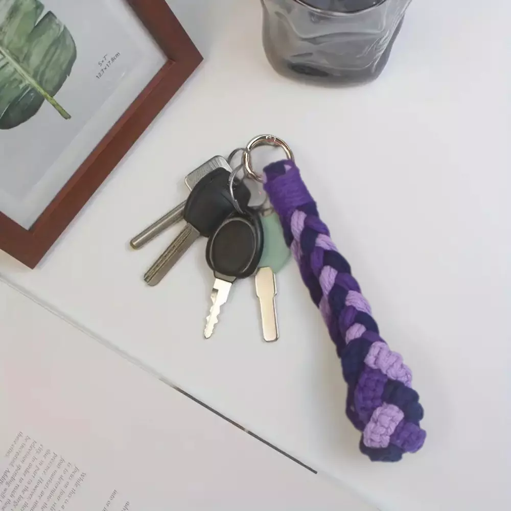 Набір макраме для рукоділля та плетіння брелока для ключів і аксесуарів 17.3х3.5см триколірний фіолетовий