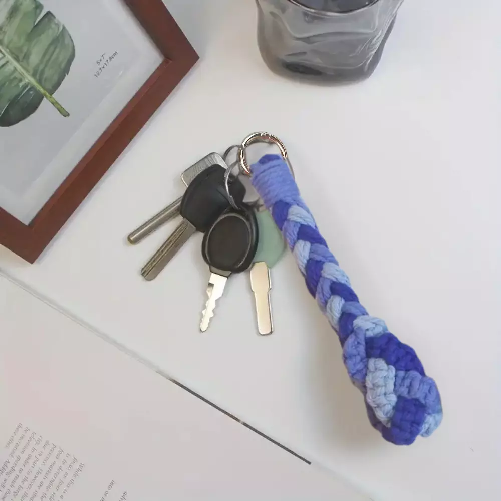 Набір макраме для рукоділля та плетіння брелока для ключів і аксесуарів 17.3х3.5см триколірний синій