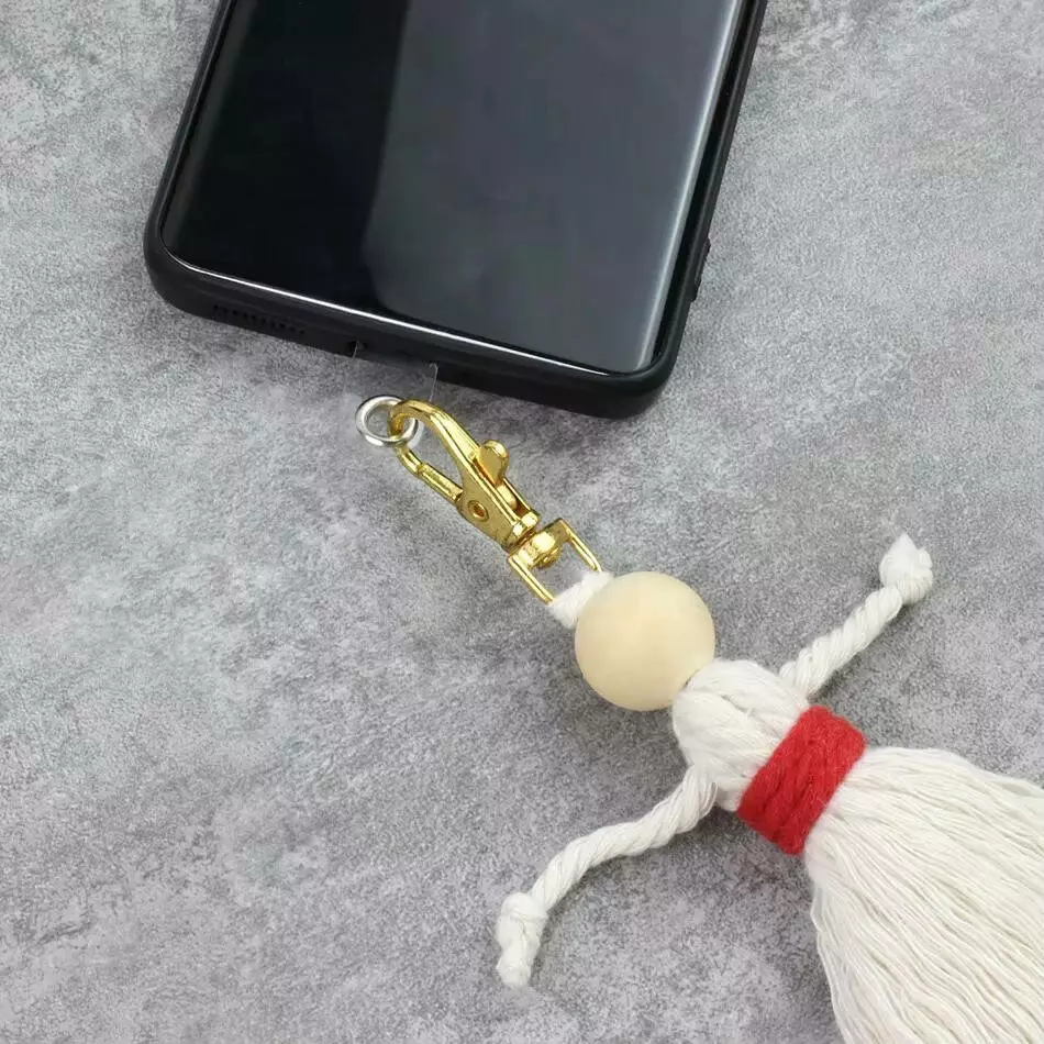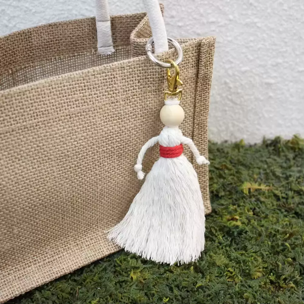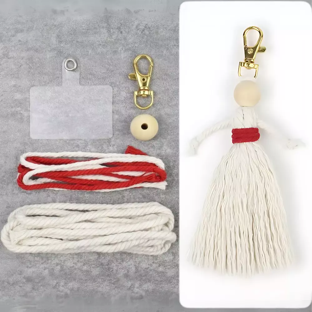 Набір макраме для рукоділля та плетіння брелока «Лялечка» для ключів і аксесуарів білий з червоним