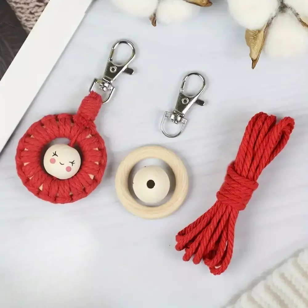 Набір макраме для творчості та ручного в'язання брелока для ключів або аксесуарів 10х5см, червоний
