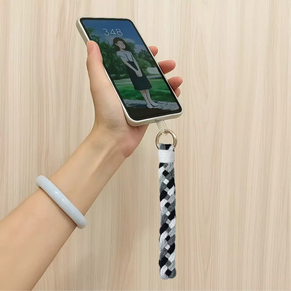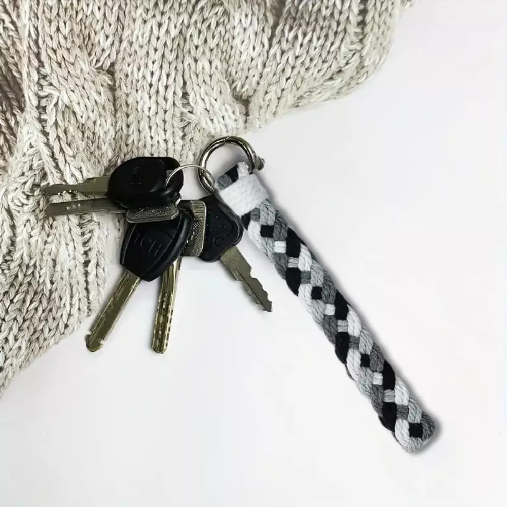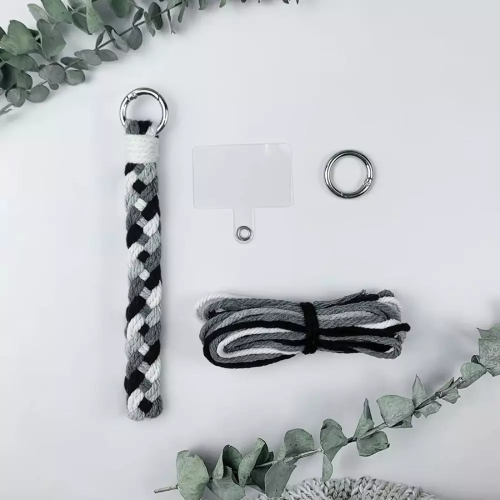 Набір макраме для в'язання і плетіння брелока "Косичка" для ключів колір сірий, темно-сірий, білий, чорний