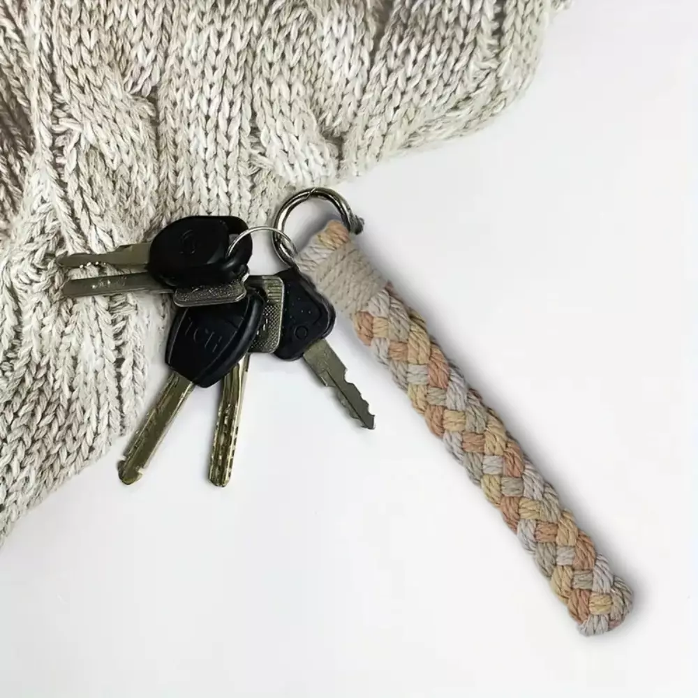 Набір макраме для в'язання і плетіння брелока «Косичка» для ключів світло-сірий, сірий, бежевий, коричневий