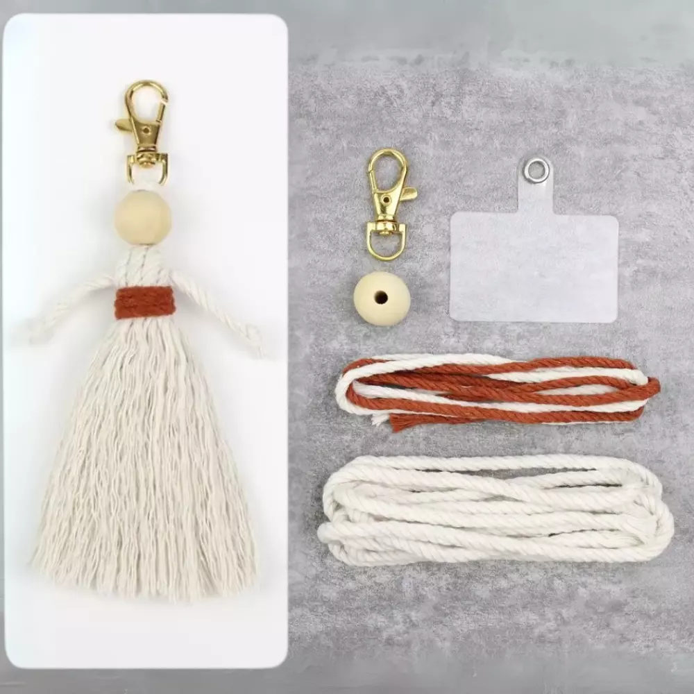 Набір макраме для в'язання та рукоділля брелока на сумку, для ключів та аксесуарів «Лялечка» білий з коричневим