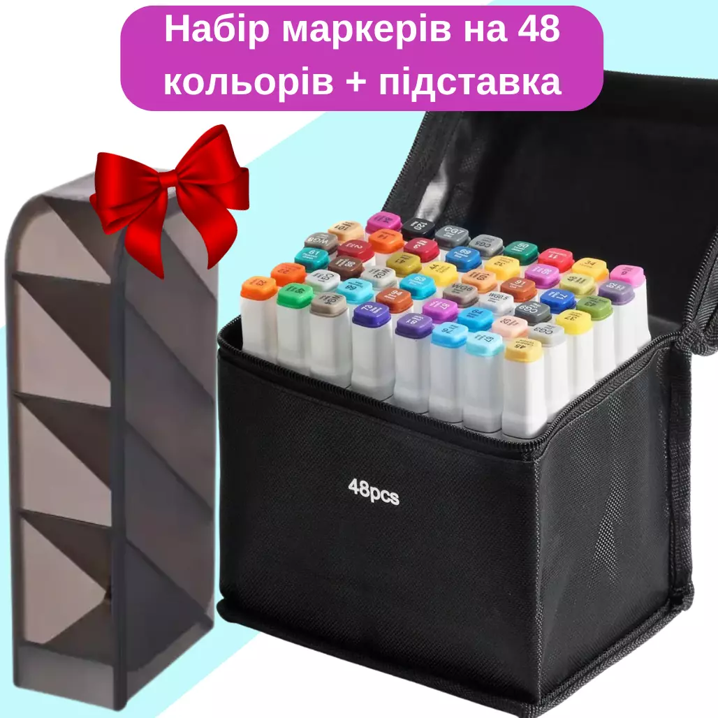 Набір маркерів для художників Touch Smooth 48 шт, двосторонні для малювання+Органайзер для канцелярії чорна