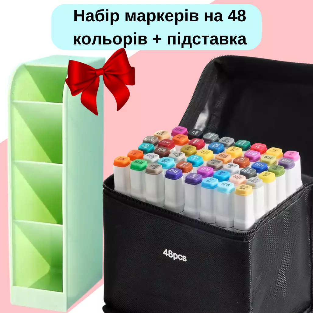 У комплект входить міцна пластикова підставка, яка спрощує зберігання та організацію маркерів. Вона складається з 4 секцій, дозволяючи зручно розмістити всі 48 маркерів. Компактний розмір підставки (8.5 × 9 × 20 см) робить її ідеальною для робочого столу, економлячи місце та забезпечуючи швидкий доступ до інструментів. Колір підставки прекрасно впишеться в будь-який інтер’єр, створюючи атмосферу порядку та затишку.