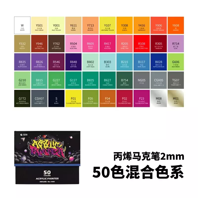 Маркери акрилові STA для малювання, преміум якість, набір 50 кольорів, універсальні для скла, дерева, ткани та кераміки
