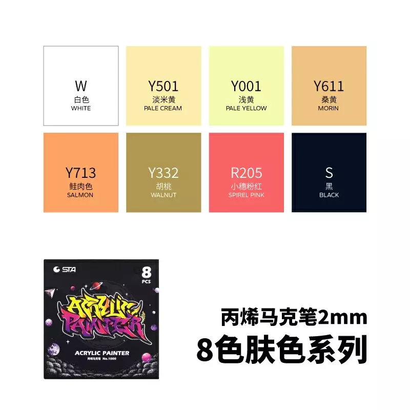Маркери акрилові STA для малювання, преміум якість, набір 8 кольорів, універсальні для скла, дерева, ткани та кераміки