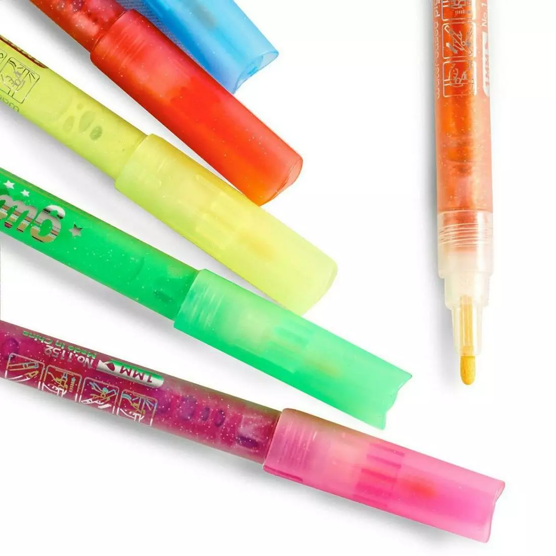 Кожен маркер з цього набору має комбінацію флуоресцентних відтінків і перламутрових блискіток. Це створює яскраві кольори, що світяться, які надають вашим роботам унікальне сяйво.