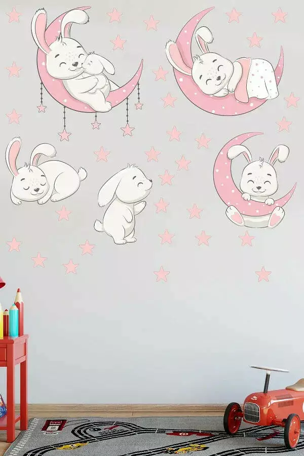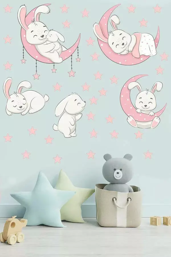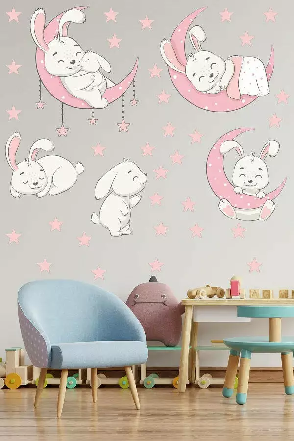 Набір наклейок «Білі зайчики» - казкова прикраса для дитячої