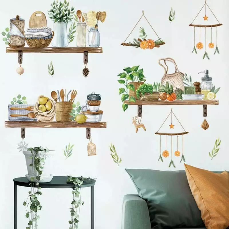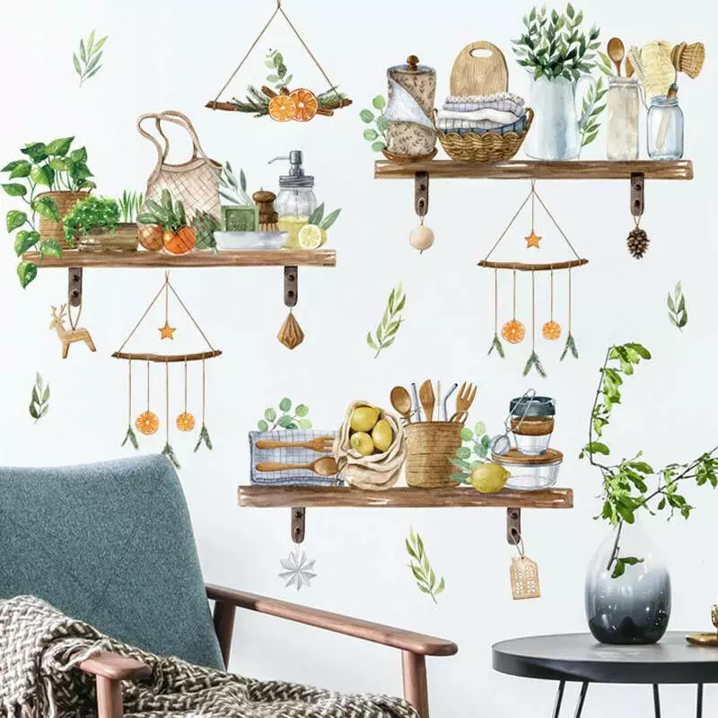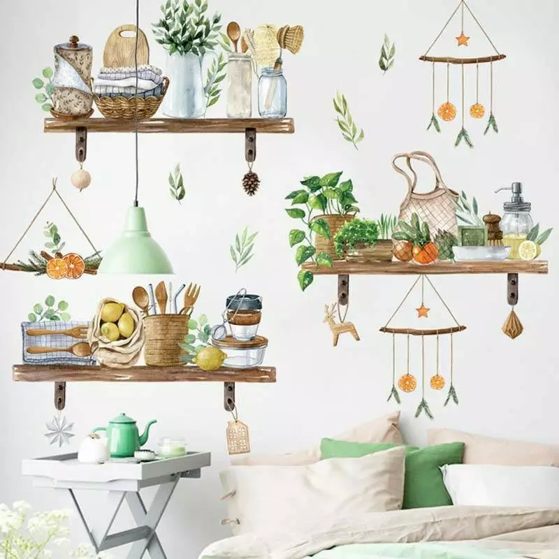 Набір вінілових наклейок «Ранок у Селі» перенесе вас в атмосферу теплого ранку в затишній сільській кухні. Зображення дерев'яних полиць, на яких акуратно розставлено кухонне приладдя, створить гармонію і теплоту у вашому інтер'єрі. Ці наклейки ідеально підійдуть для декору стін кухні, їдальні або навіть кімнати в стилі прованс.