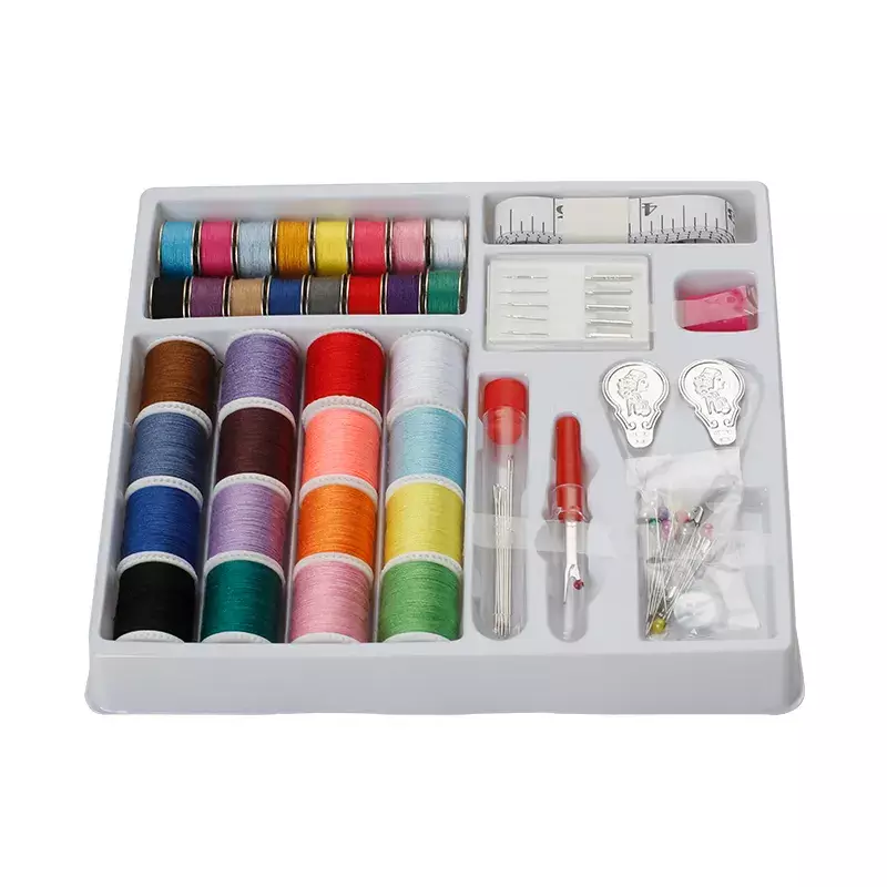 Комплектація: 32 котушки ниток (16шт. швейні нитки, 16шт. нитки на човниковому сердечнику), 4 види голок, метр
