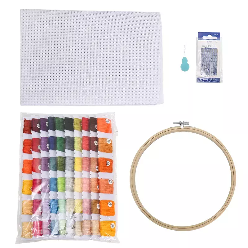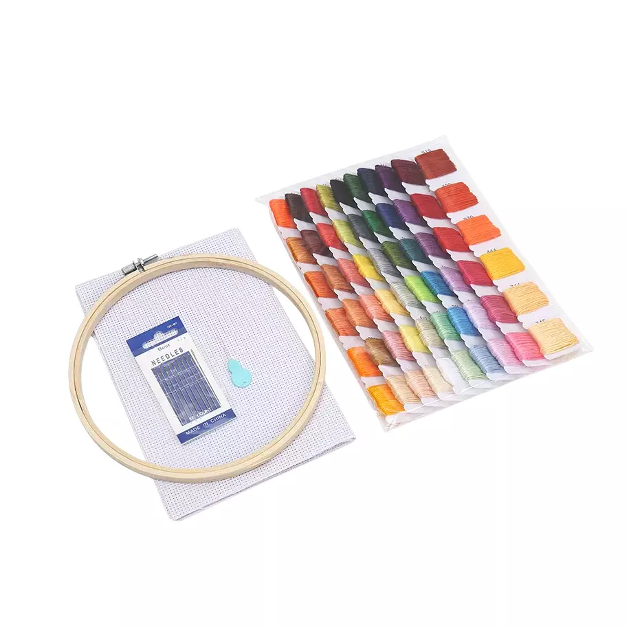 Комплектація: ниток 60шт, голок 10шт, обруч для вишивки хрестом
