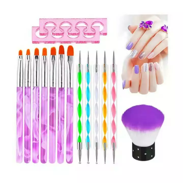 Професійний набір інструментів для нейл-арту включає в себе 15 ретельно підібраних предметів для створення ідеального манікюру і педикюру. До набору входять 7 пензлів різних розмірів, які дають змогу легко і точно наносити лак, виконувати деталізовані малюнки та лінії, а також виконувати інші манікюрні процедури. Кожен пензлик має номер (NO.14, NO.12, NO.10, NO.8, NO.6, NO.4, NO.2), що робить їх зручними для використання в різних техніках.