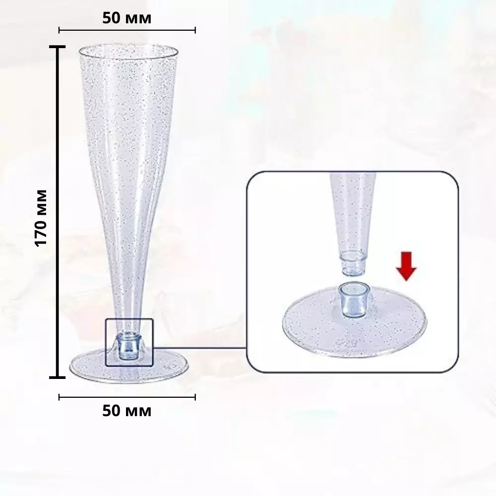 Келихи виготовлені з міцного пластику, стійкого до пошкоджень, і призначені для багаторазового використання. Завдяки знімній ніжці вони зручні в зберіганні та транспортуванні. Їхній об'єм 130 мл (133 мл до країв) ідеально підходить для подачі шампанського та ігристих вин. Стильний дизайн і продумана конструкція роблять їх відмінним вибором для будь-якого свята.