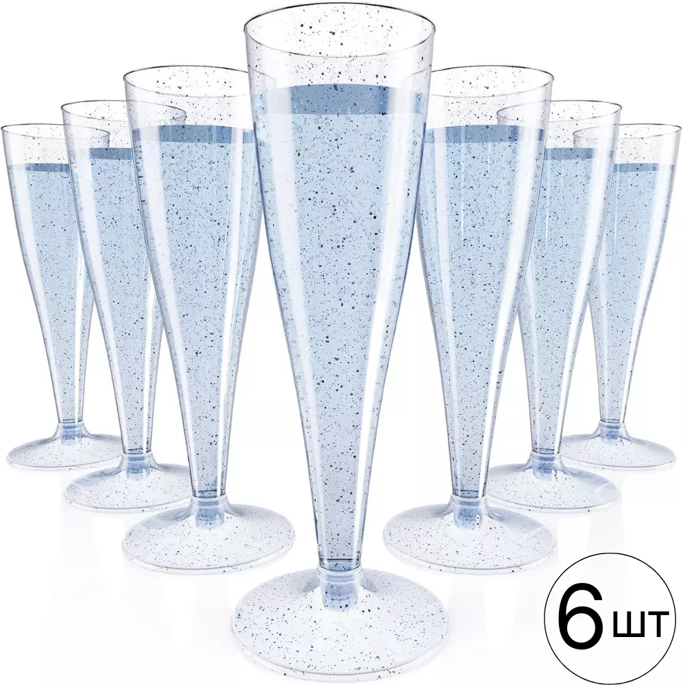 Набір пластикових келихів для шампанського 6 шт преміум класу 133 мл, святкові зі сріблястими блискітками