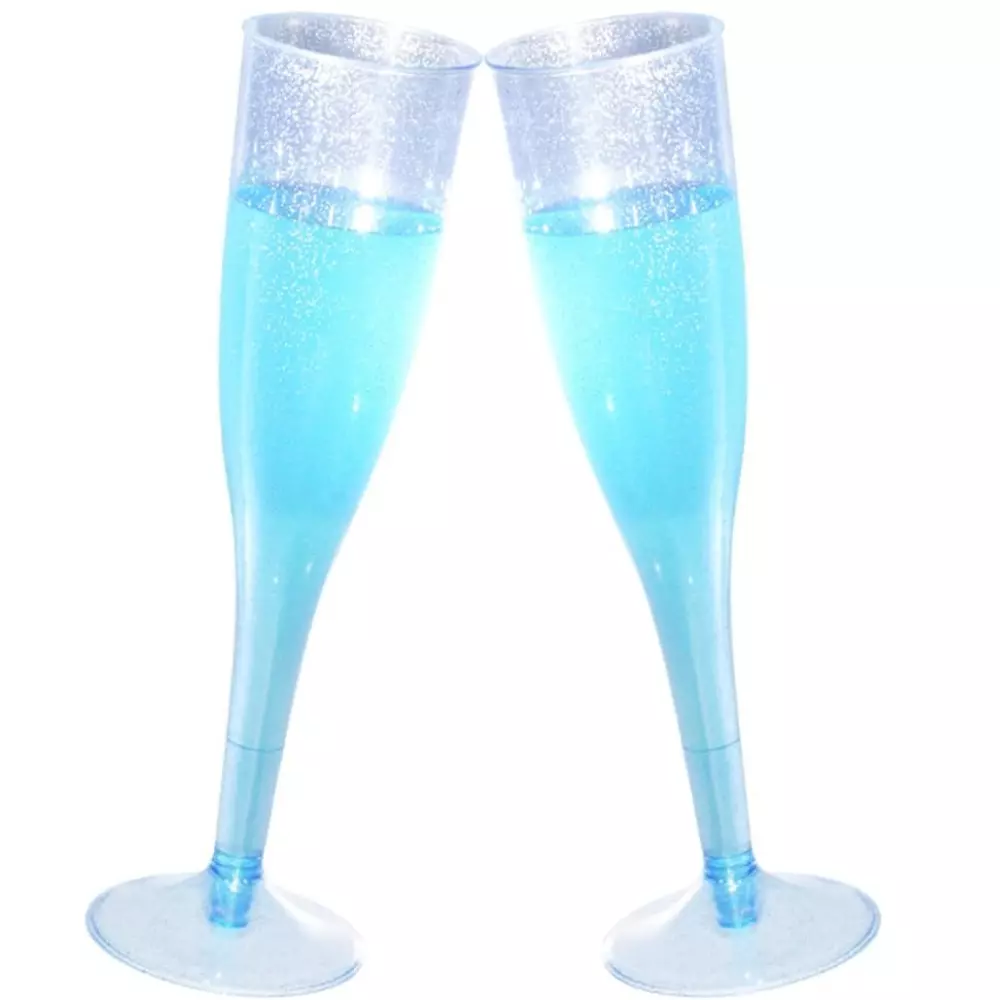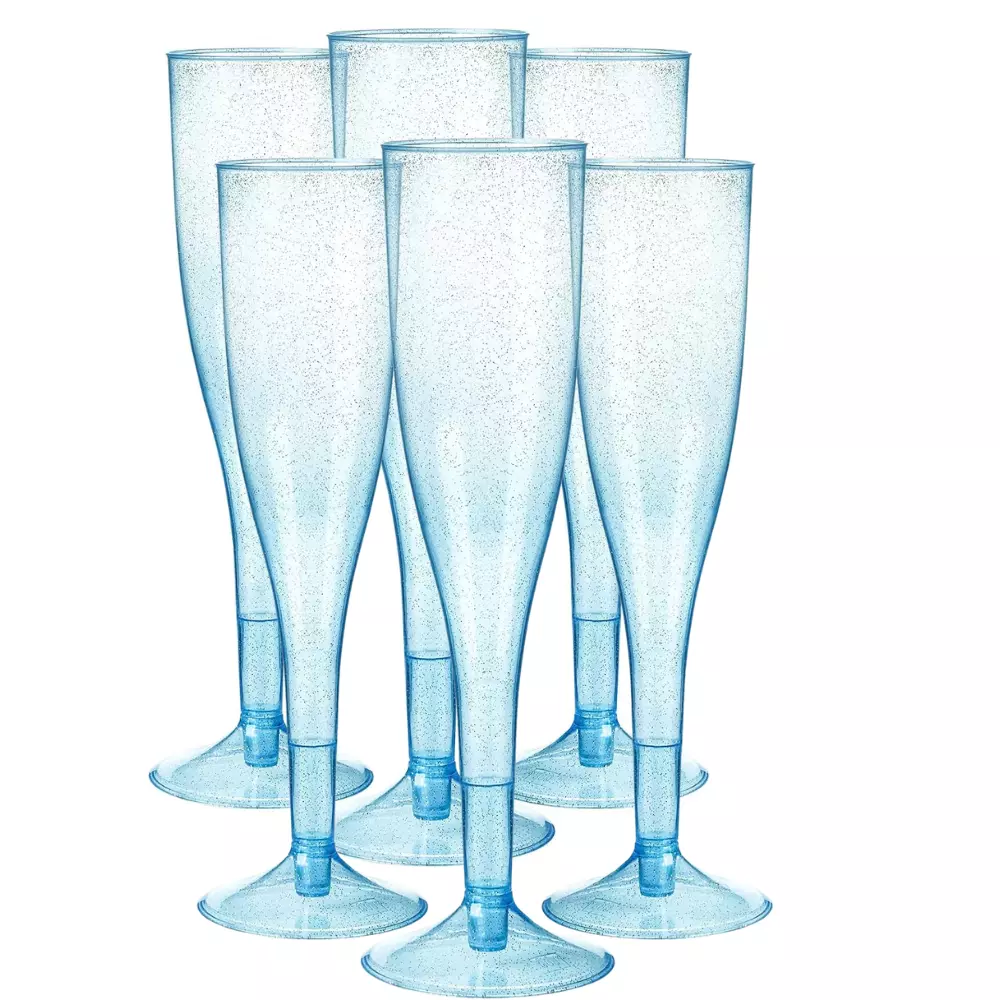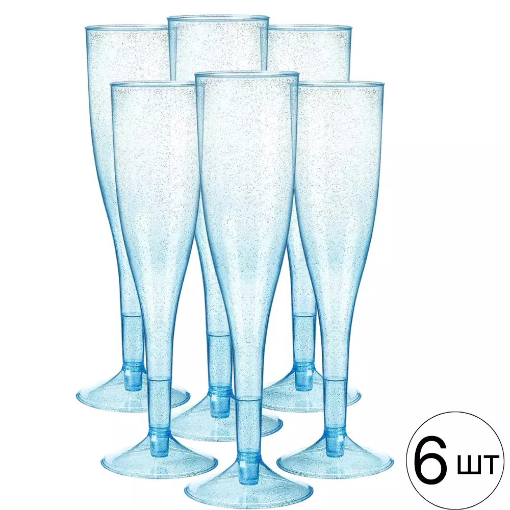 Набір пластикових келихів для шампанського 6 шт преміум класу 192 мл, блакитні, святкові з блискітками