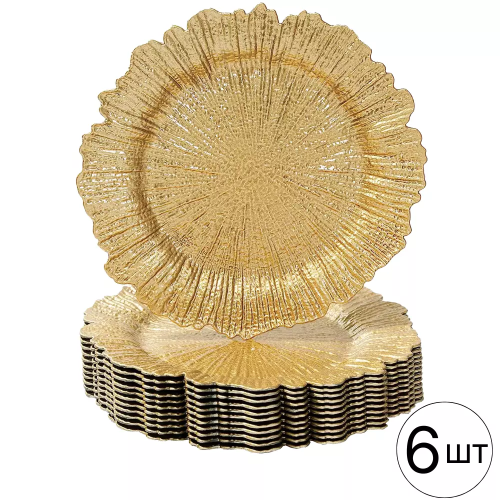 Набір пластикових, міцних, підставних тарілок 6 шт якісних. Діаметр 30 см, колір золото