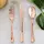 Набір пластикових столових приборів 18 шт якісних (ножі, виделки, ложки).Багаторазовий посуд, рожеве золото