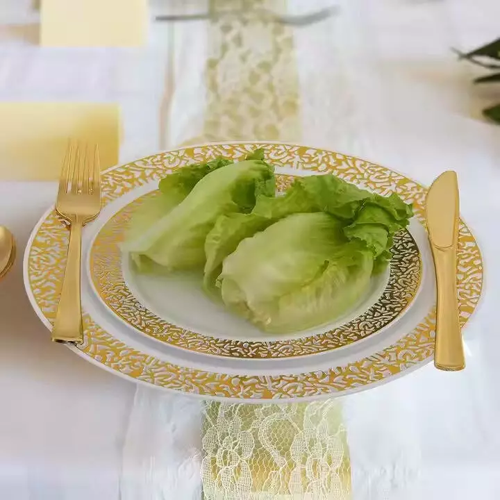 Тарілки виконані з міцного пластику високої якості, стійкого до пошкоджень і легко очищається. Легкі і зручні у використанні, вони підходять для сервірування як гарячих, так і холодних страв. Цей набір забезпечить не тільки комфорт, але і стильну атмосферу на будь-якому торжестві.