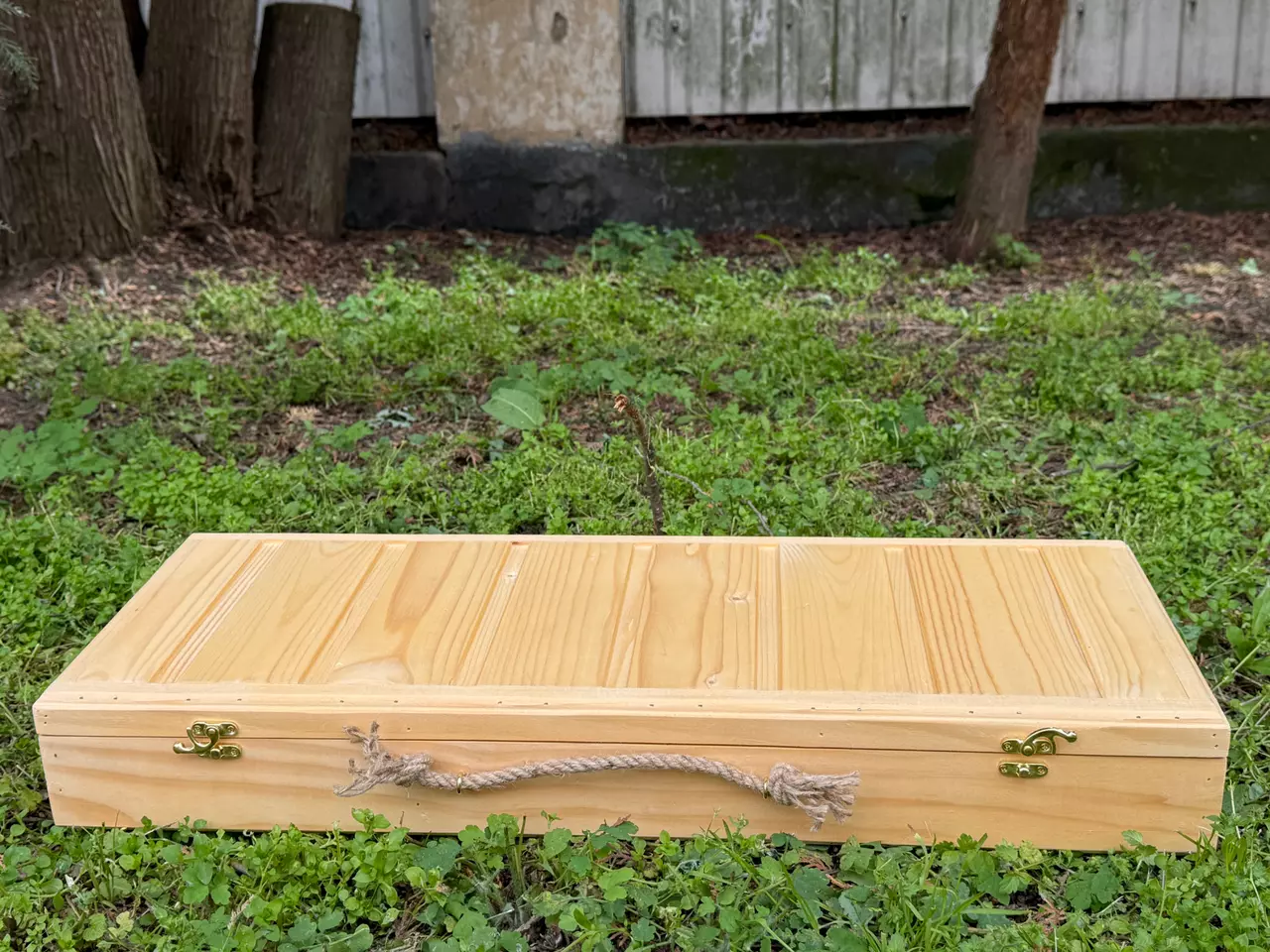 Упаковка: дерев’яний кейс з ручкою з каната та 2 металевими замками