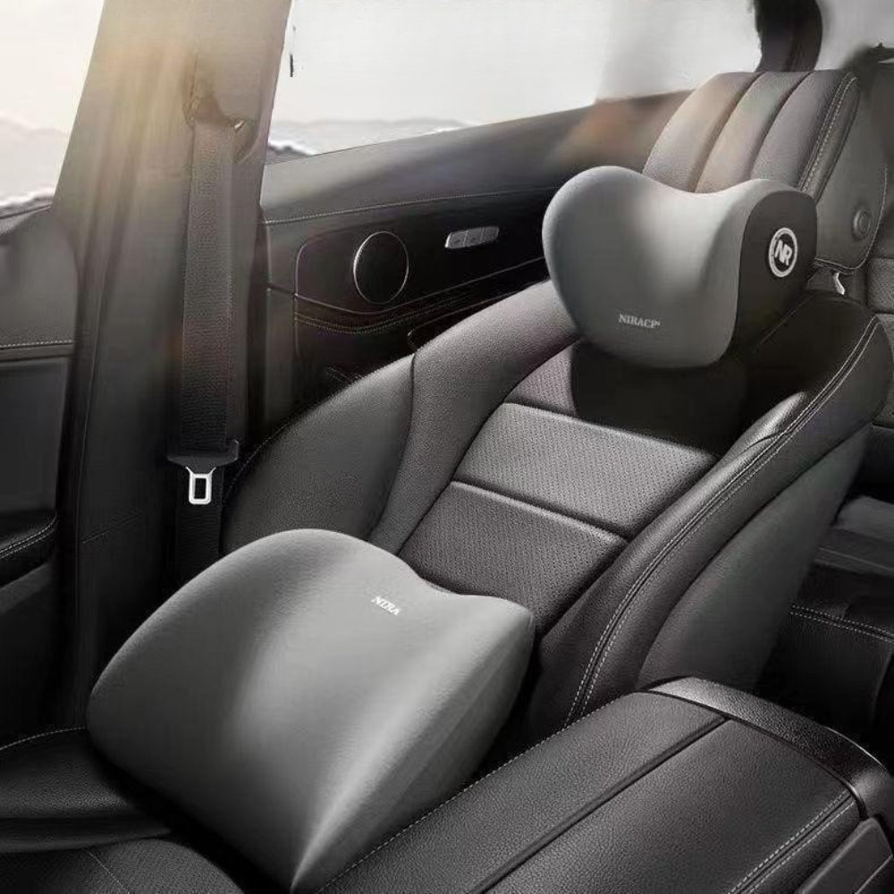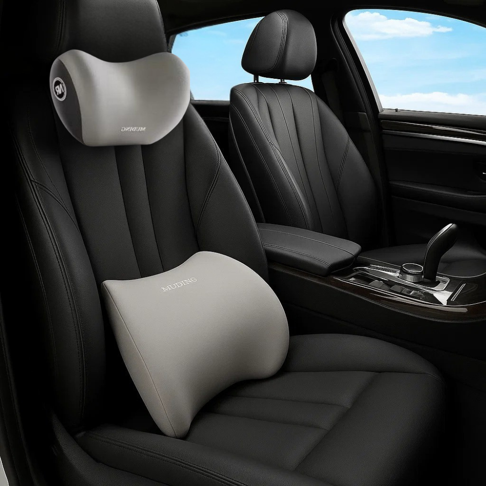 Набір подушок ортопедичних під шию і спину в машину, подушки на підголівник і спинку сидіння, світло-сірі