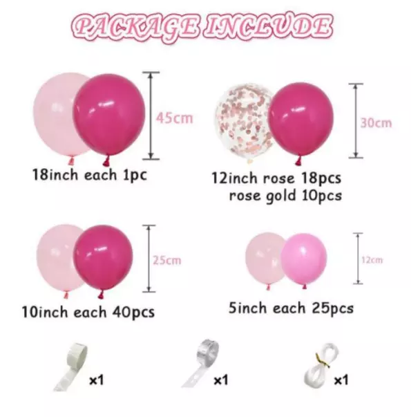 До набору входять кулі різних діаметрів - від 5 до 18 дюймів (12-45 см), що дає змогу створити об'ємні композиції та прикрасити приміщення на будь-який смак. Рожеві кулі поєднуються з кулями рожевого золота, а також блискучими прозорими кулями, що робить декор ще більш привабливим і цікавим. Ці кулі легко комбінуються, створюючи гармонійний дизайн, що запам'ятовується.