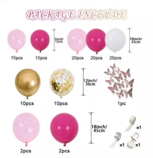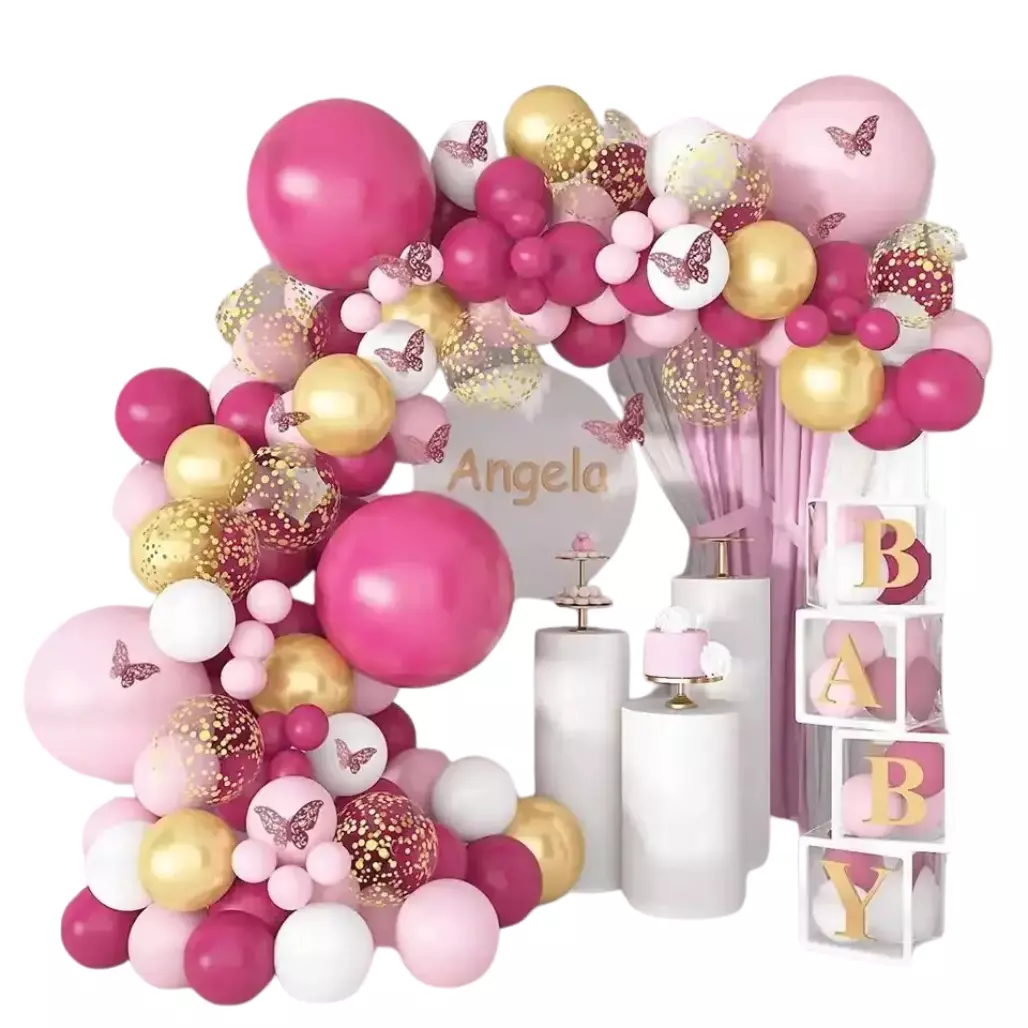 Цей набір "Рожеві метелики" ідеально підходить для створення ніжного та елегантного оформлення будь-якого свята, особливо дівич-вечорів, днів народження або тематичних вечірок. До нього входять повітряні кульки різних відтінків рожевого, білого та золотого кольорів, що додасть простору свіжості та святкової атмосфери.