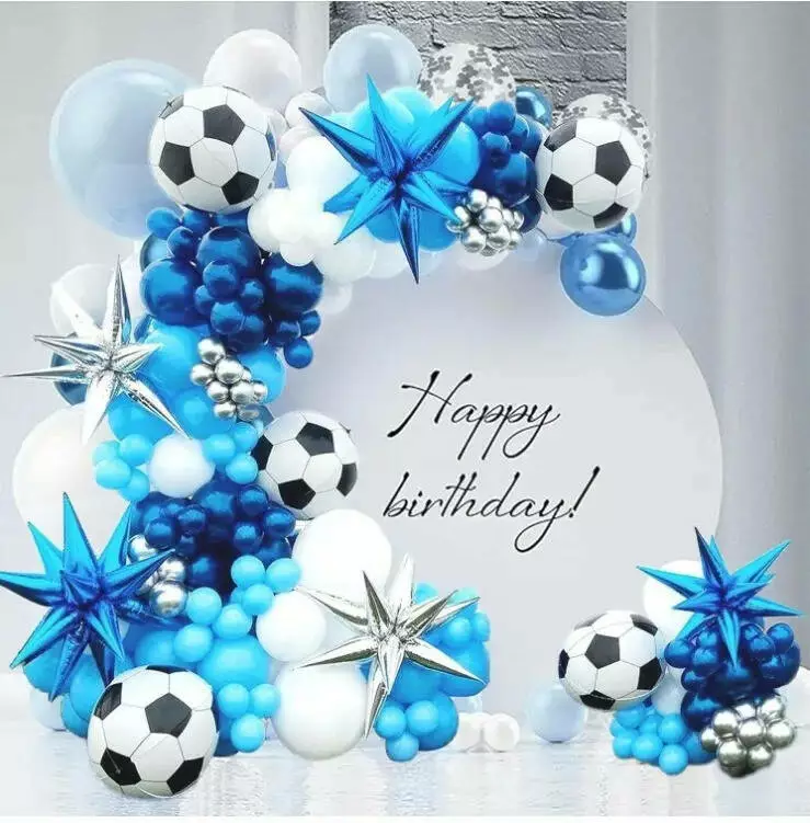 У наборі передбачені різноманітні елементи: повітряні кулі різних розмірів, зокрема спеціальні кулі у вигляді футбольного м'яча, а також декоративні гірлянди для додавання об'єму. Різноманітні насадки та кріплення допоможуть легко оформити зону святкування та створити гармонійний і стильний декор.