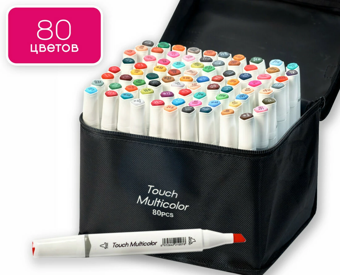 У наборі 80 маркерів різних кольорів.
