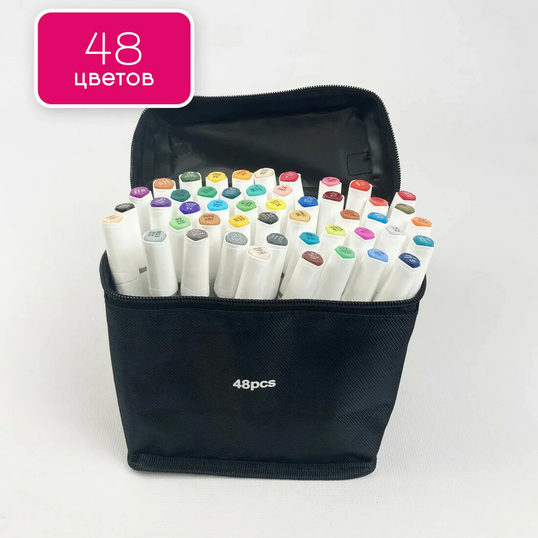 Набір професійних двосторонніх маркерів для скетчинга в чохлі Rich New 48 кольорів, Набір скетч маркерів