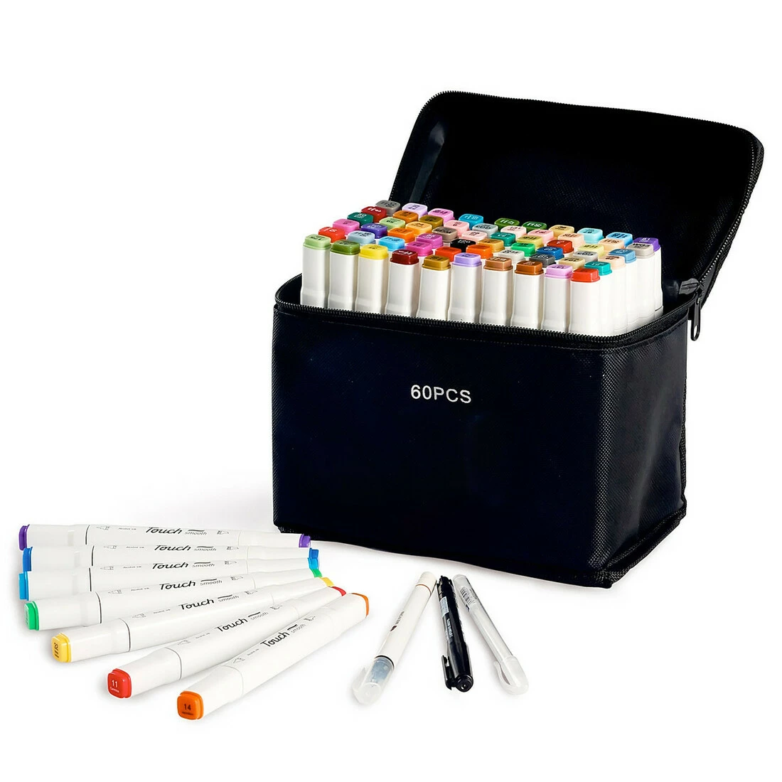 Набір професійних двосторонніх маркерів для скетчинга в чохлі Touch 60 штук, Фломастери для художників
