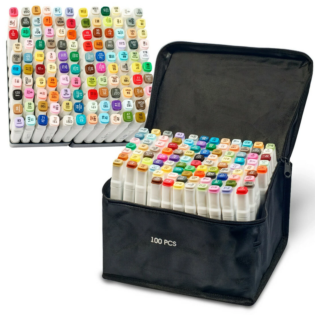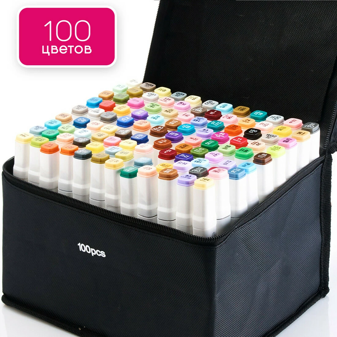 Набір професійних двосторонніх маркерів Touch для скетчинга 100 кольорів в чохлі, Маркери для дизайнерів