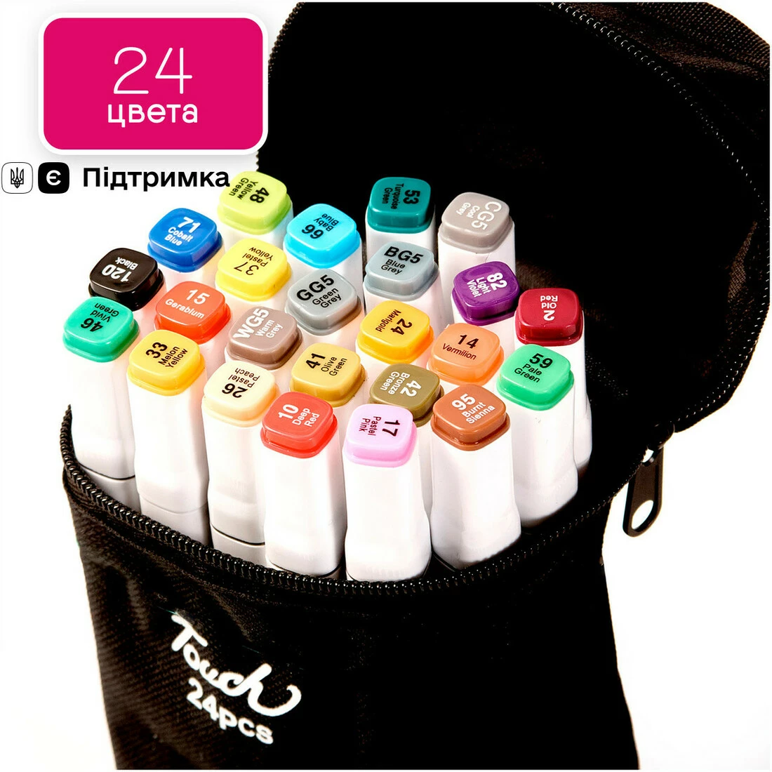 Набір професійних двосторонніх маркерів Touch для скетчинга 24 кольору в чохлі, Фломастери для малювання