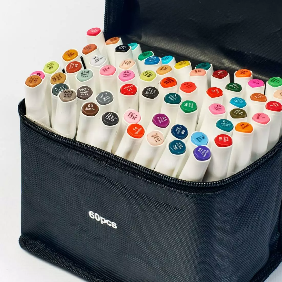 Набір професійних маркерів двосторонніх 60 штук Rich New для малювання і скетчинга на спиртовій основі