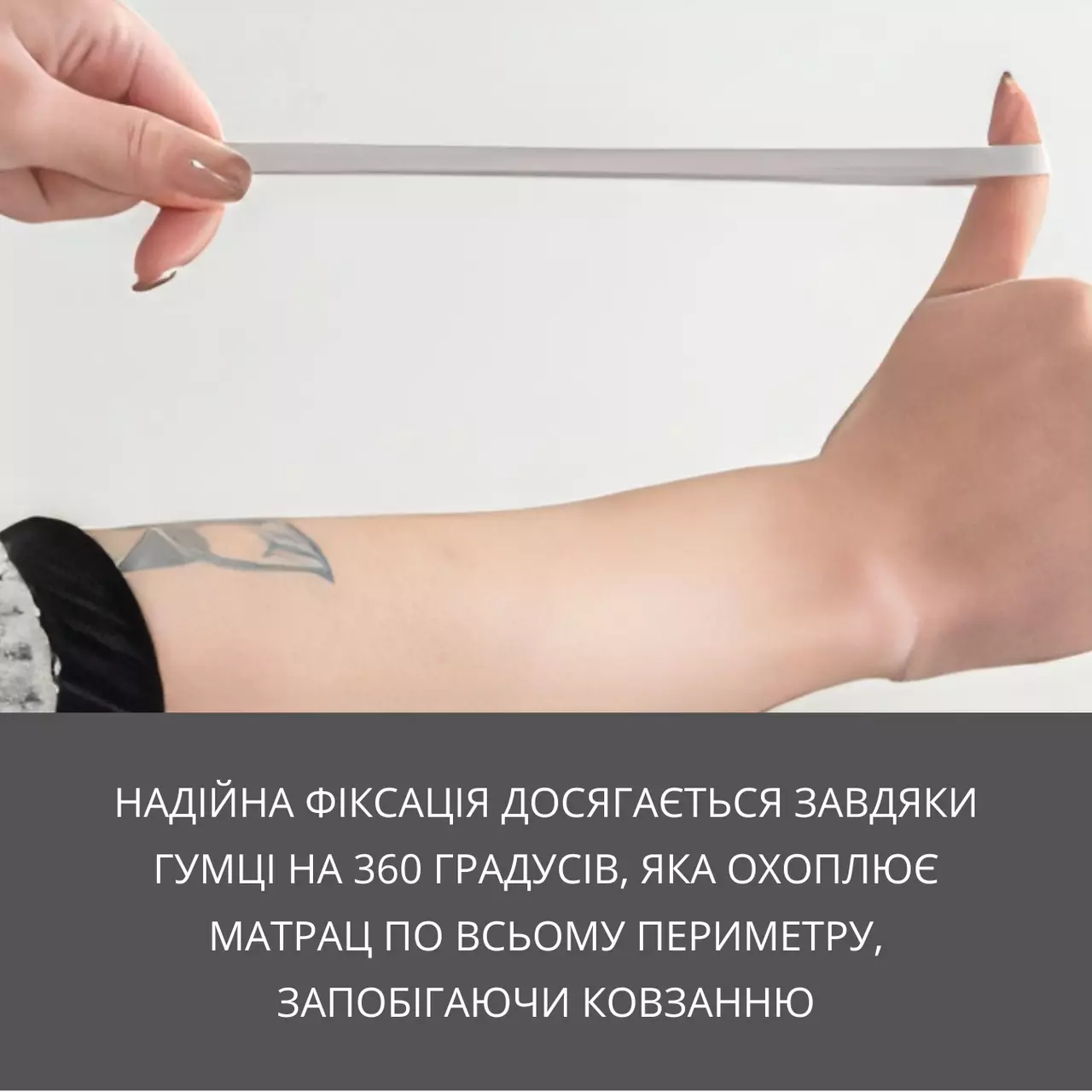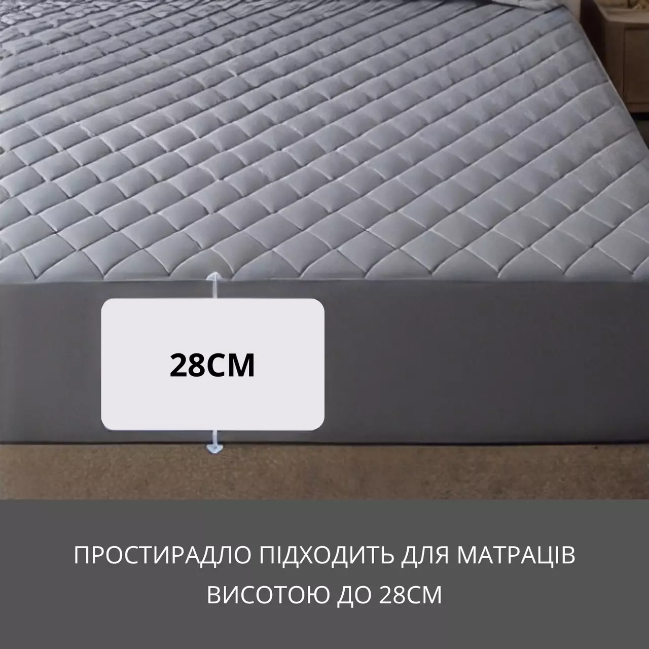 Надійна фіксація досягається завдяки гумці на 360 градусів, яка охоплює матрац по всьому периметру, запобігаючи ковзанню. Простирадло підходить для матраців висотою до 28см.