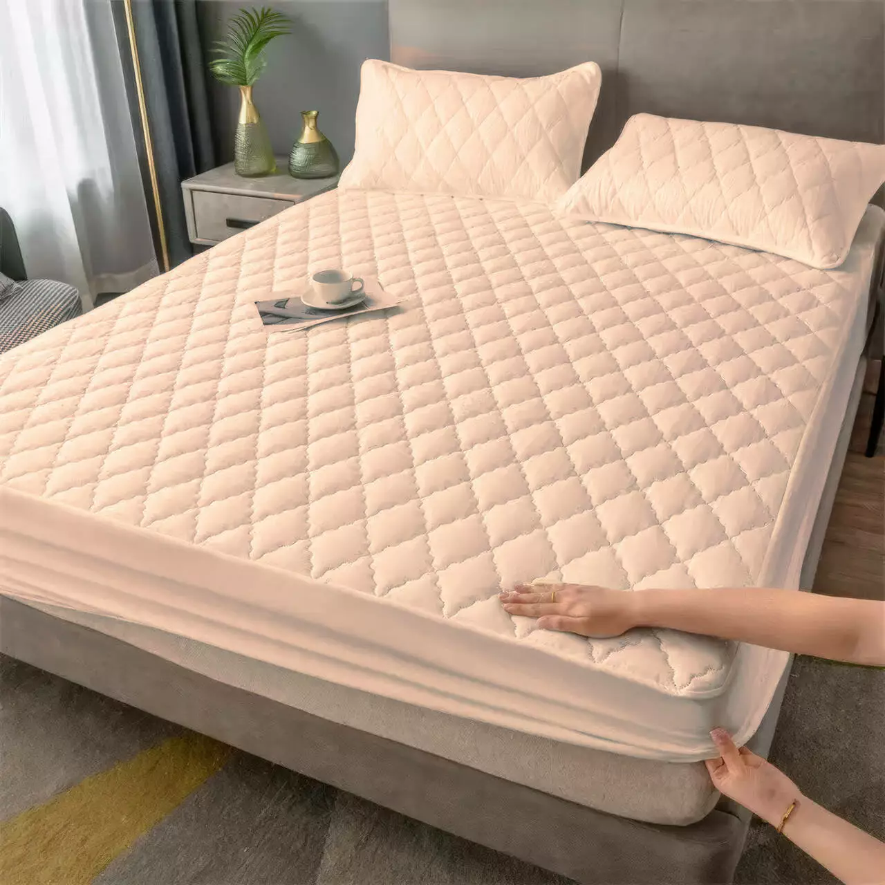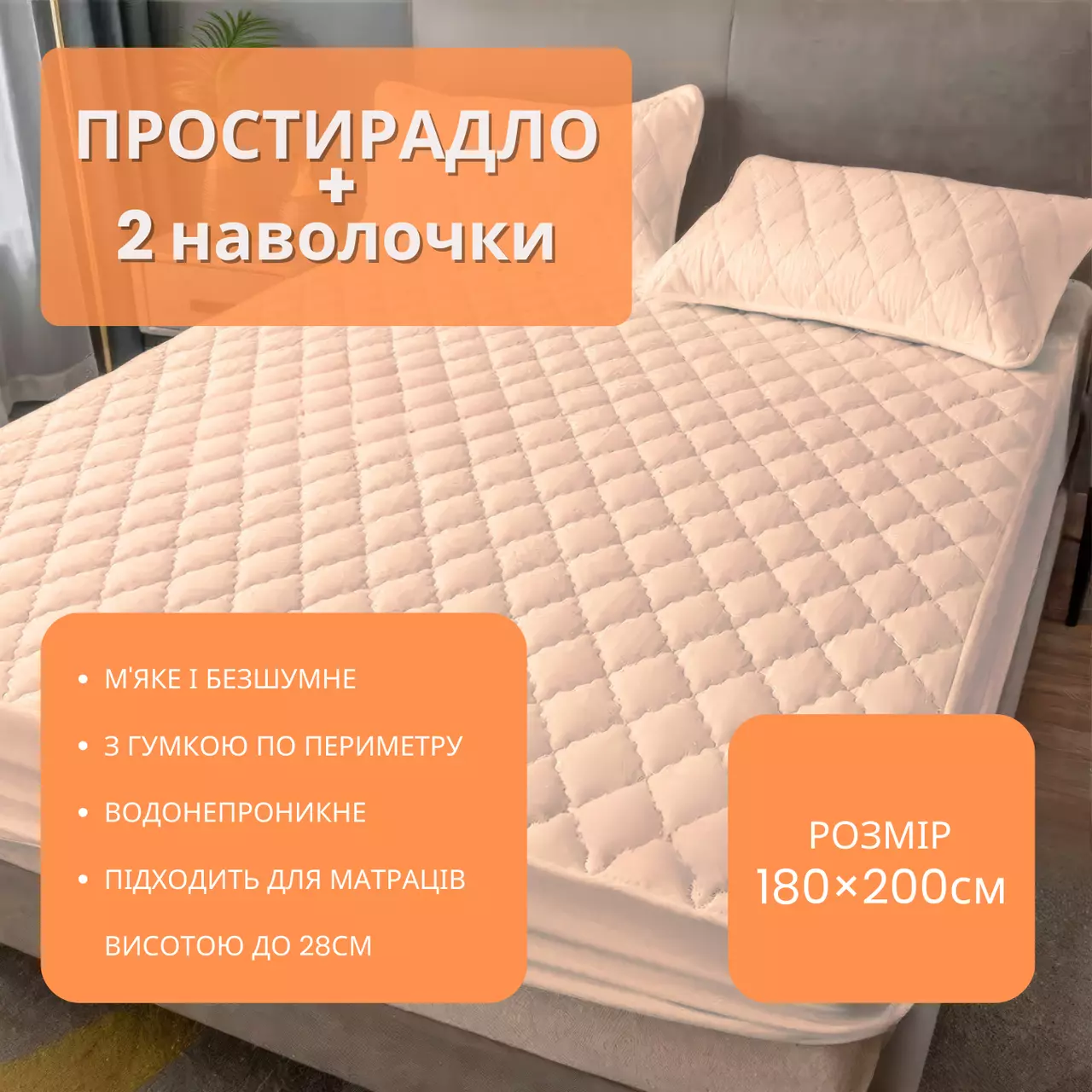Набір простирадло-наматрацник (180×200см) водонепроникне на гумці, і 2 наволочки, в бежевому кольорі