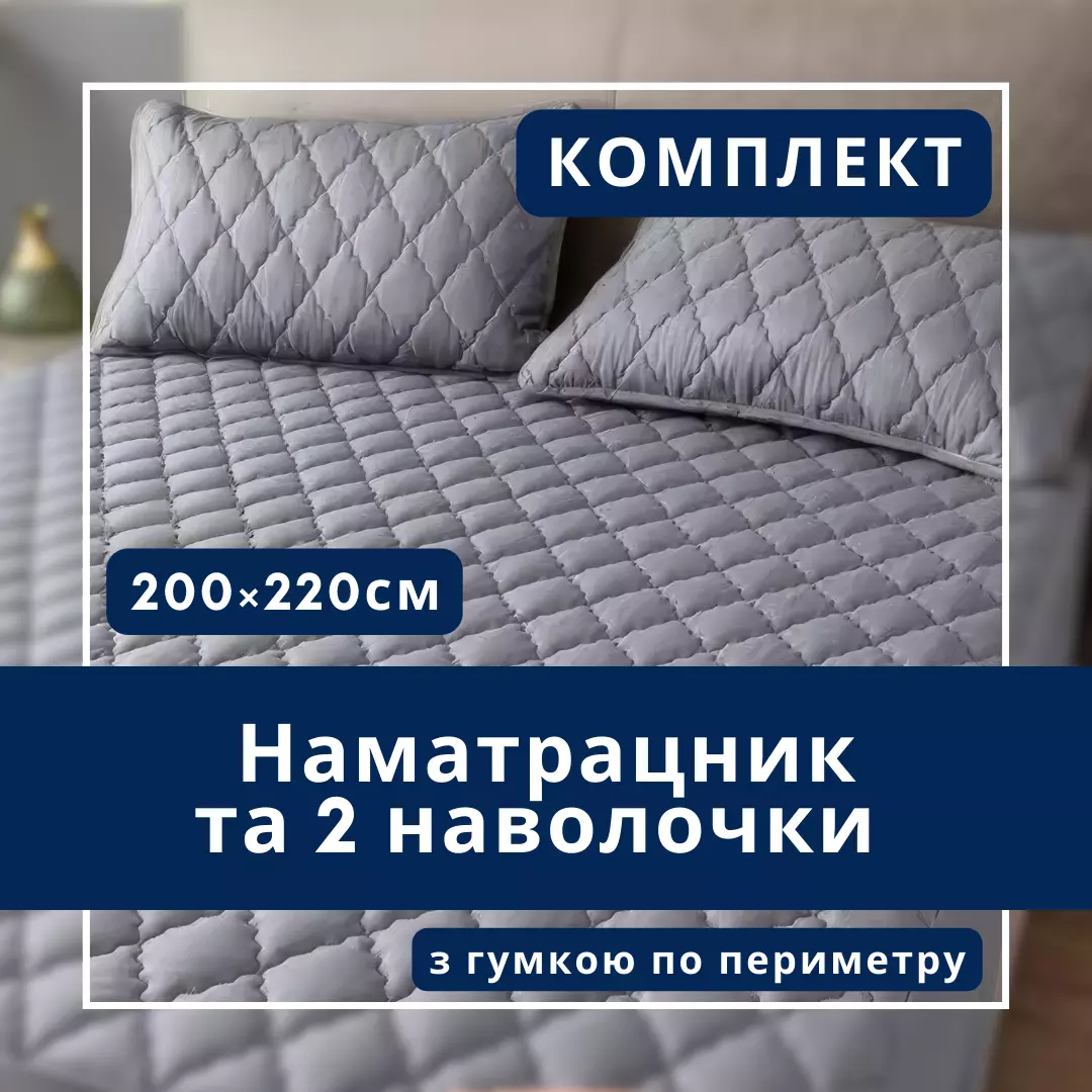 Набір простирадло-наматрацник (200×220см) водонепроникне на гумці, і 2 наволочки, в сірому кольорі