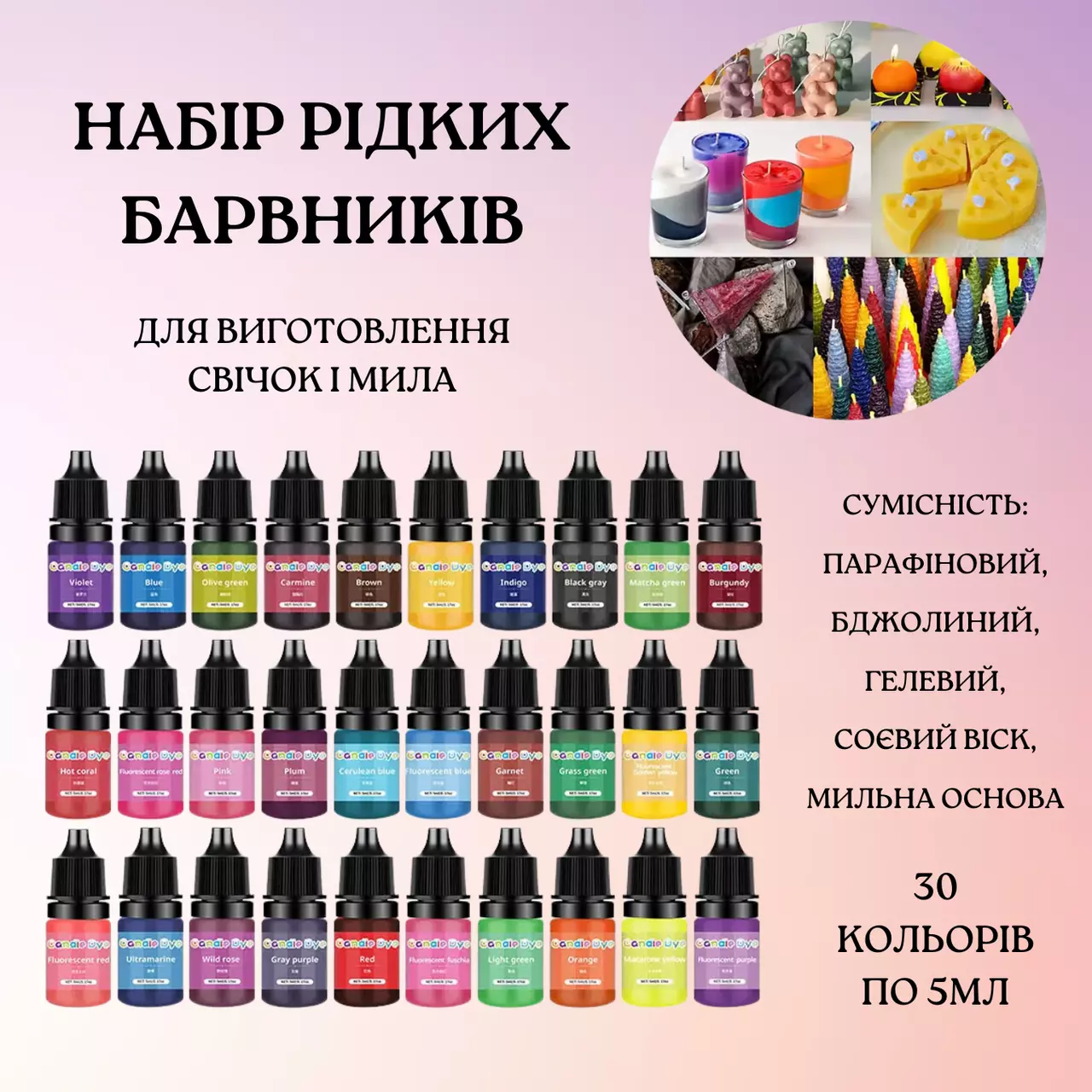 Набір рідких концентрованих барвників для виготовлення мила та свічок, 30 відтінків по 5 мл