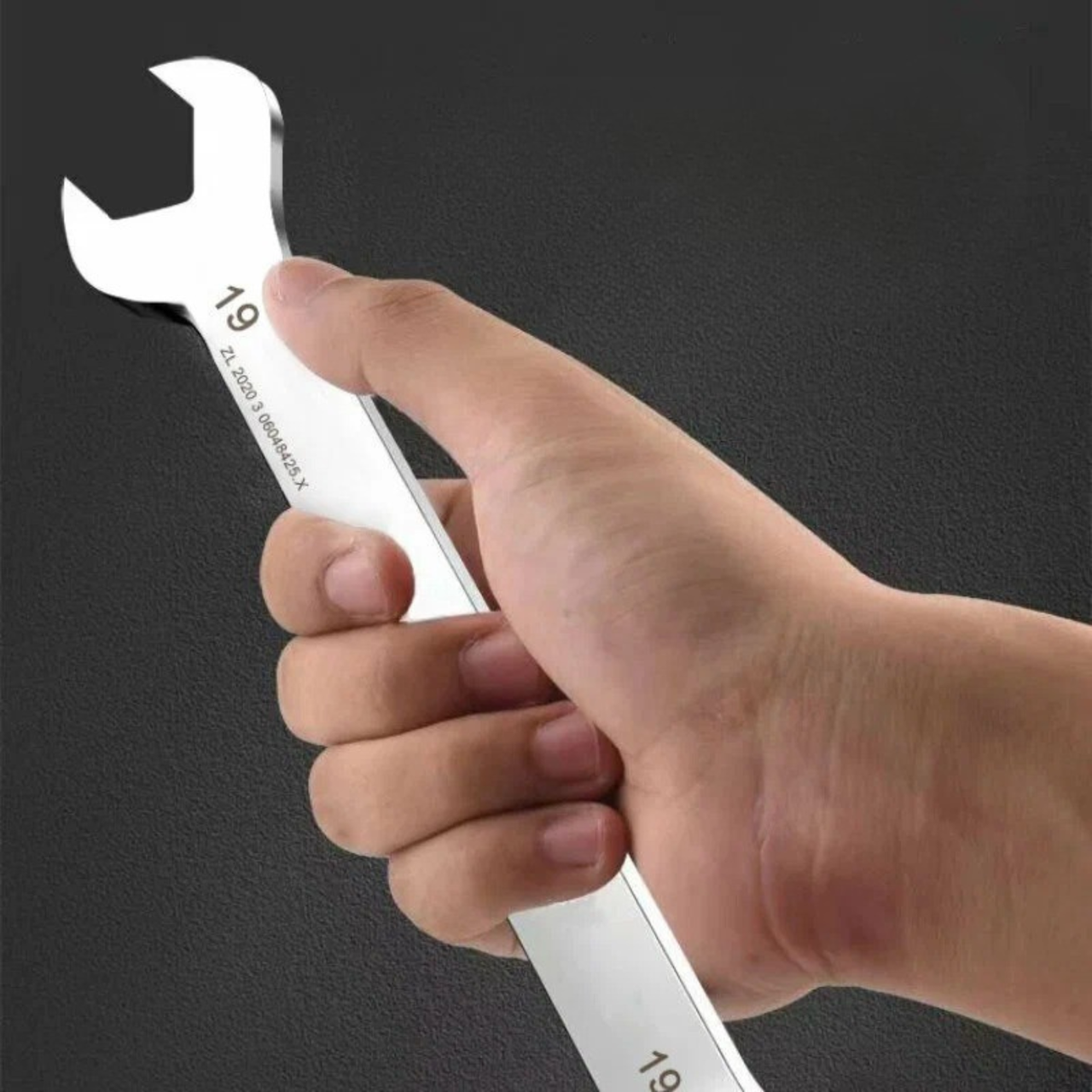 Кожен ключ має комбіновану конструкцію: з одного боку ріжковий ключ, з іншого — накидний, що забезпечує зручність роботи в різних умовах. Інструменти акуратно розміщені в міцному тканинному чохлі з фіксацією розмірів, що полегшує зберігання, транспортування та швидкий вибір потрібного ключа.