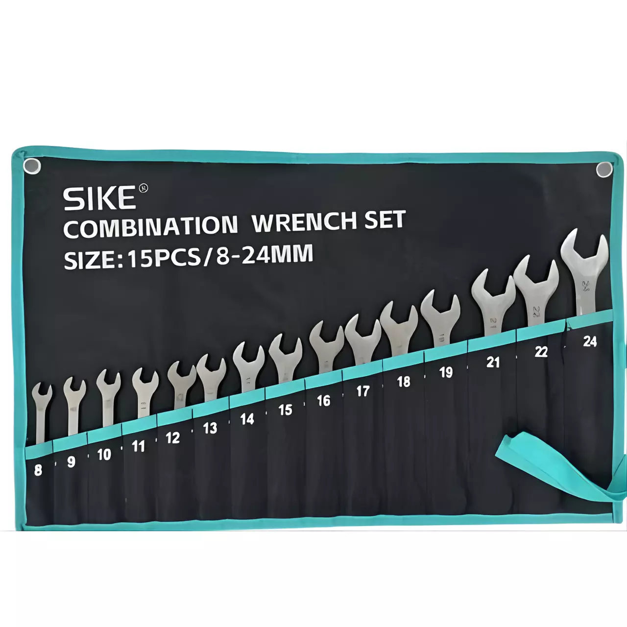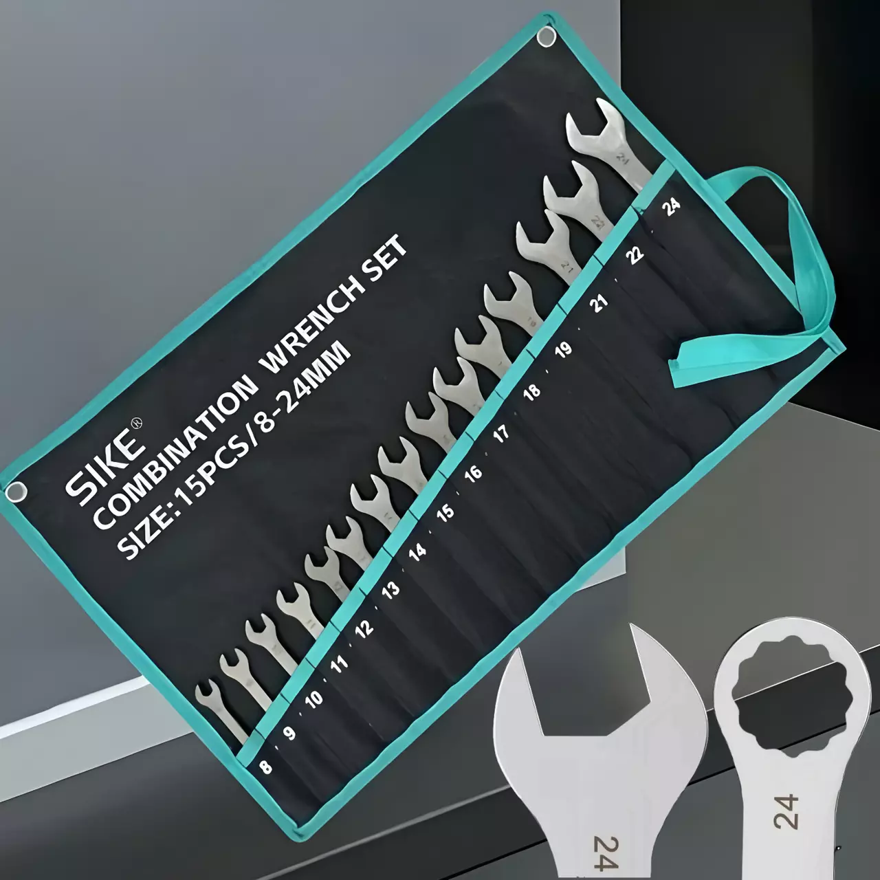 Набір рожково-накидних комбінованих ключів 15 шт, 8-24 мм, гайкові для ремонту, автомайстерень, гаража і будинку з чохлом