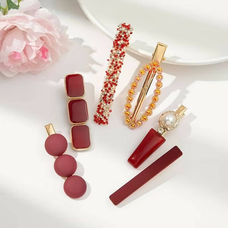Набір жіночих заколок для волосся в елегантному золото-червоному