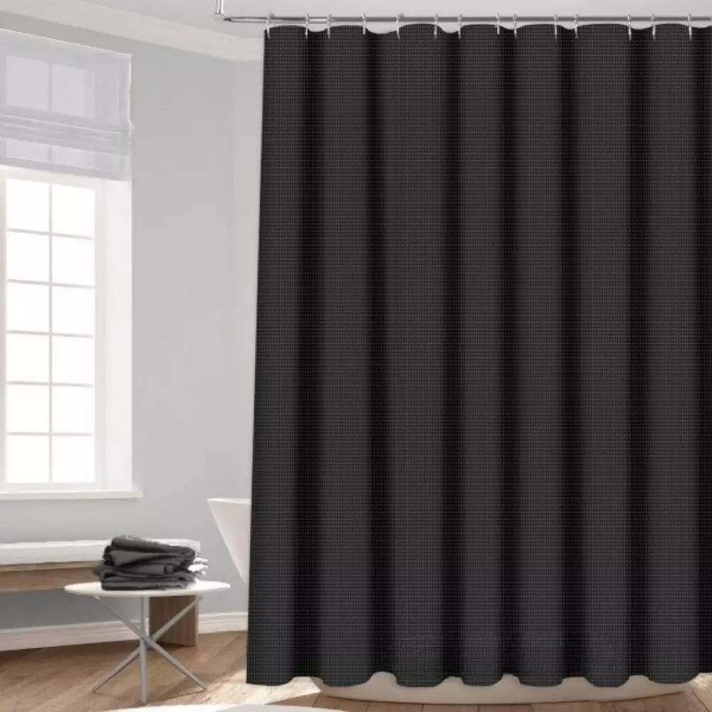 Цей набір включає в себе шторку для ванної та душу з підкладкою, які ідеально доповнять інтер'єр вашої ванної кімнати. Шторка виготовлена з високоякісного 100% поліестеру чорного кольору з жакардовим візерунком. Вона має водовідштовхувальні властивості та щільність 130 г/м². Розмір шторки становить 178 x 183 см, що підходить для стандартних ванних кімнат. У комплект також входять 12 роликових гачків, що дозволяє легко та швидко закріпити шторку.