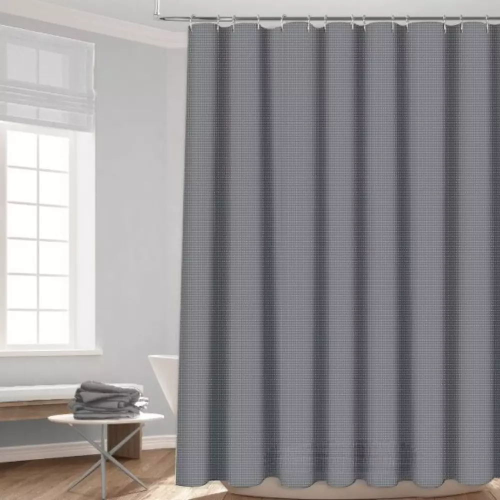 Цей набір включає в себе шторку для ванної та душу з підкладкою, які ідеально підійдуть для вашого інтер'єру. Шторка виготовлена з високоякісного 100% поліестеру сірого кольору з жакардовим візерунком. Вона має водовідштовхувальні властивості та щільність 130 г/м². Розмір шторки становить 178 x 183 см, що підходить для стандартних ванних кімнат. У комплект також входять 12 роликових гачків, що дозволяє легко і швидко повісити шторку.