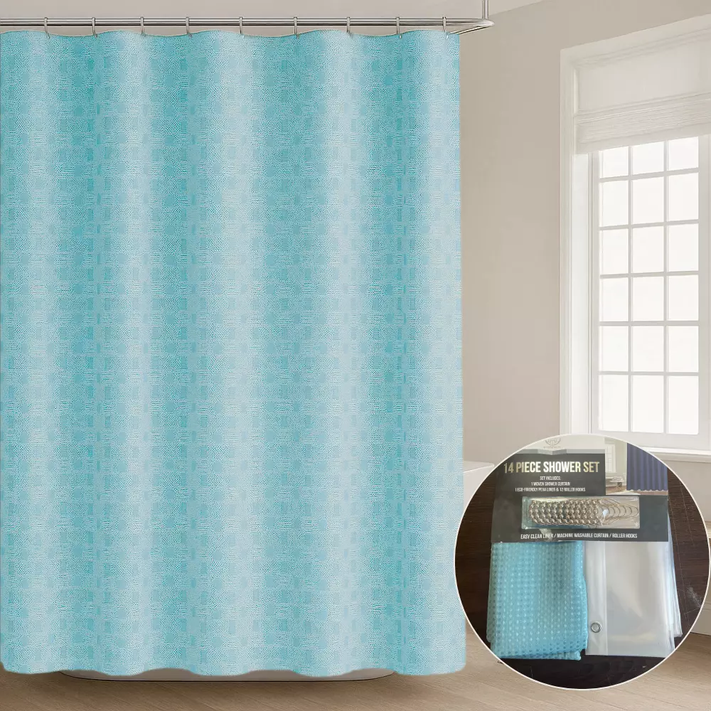 Додатково до набору входить прозора підкладка з екологічного матеріалу PEVA, яка ефективно захищає від бризок та допомагає зберігати основну шторку в чистоті. Матеріал має щільність 100 г/м², що гарантує міцність, еластичність і довговічність. 12 металевих люверсів підвищують стійкість до зношування, а три вбудовані магніти допомагають зафіксувати підкладку в потрібному положенні, запобігаючи її прилипання до тіла під час приймання душу. Цей комплект поєднує стильний зовнішній вигляд, зручність і довговічність, забезпечуючи максимальний комфорт у догляді за ванною кімнатою.