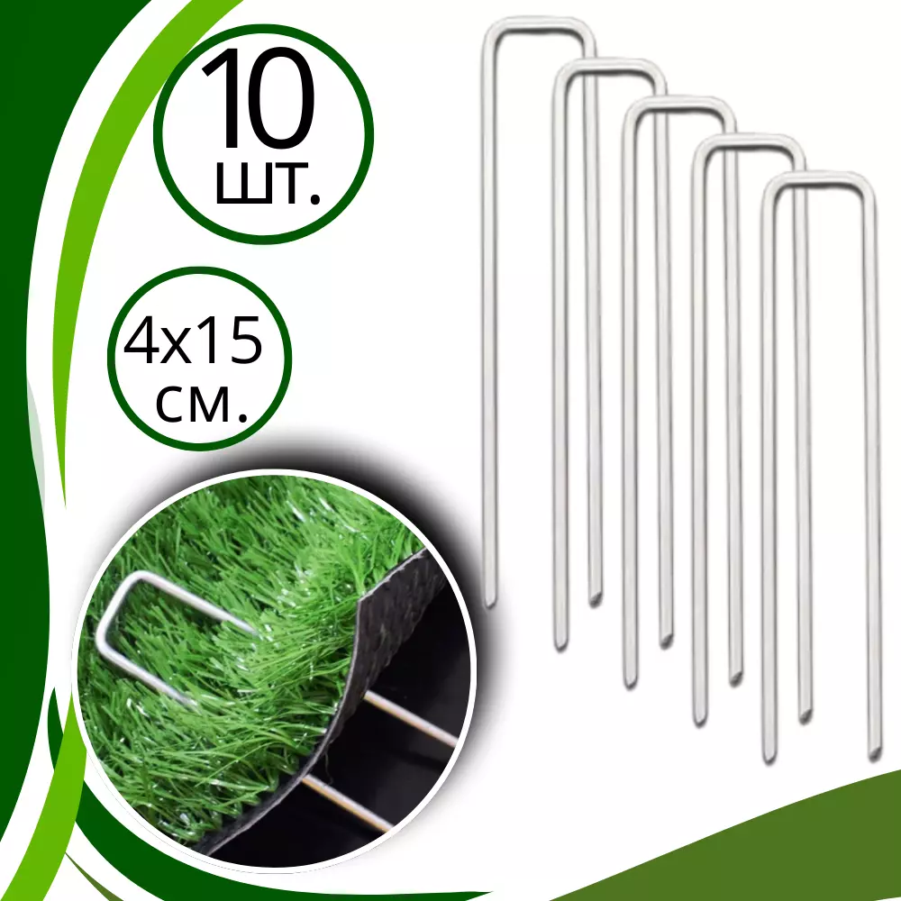 Набір скоб садові кріпильні 10 шт металеві фіксатори для газону оцинковані, універсальні розмір 4х15 см