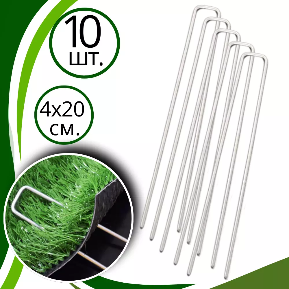 Набір скоб садові кріпильні 10 шт металеві фіксатори для газону оцинковані, універсальні розмір 4х20 см