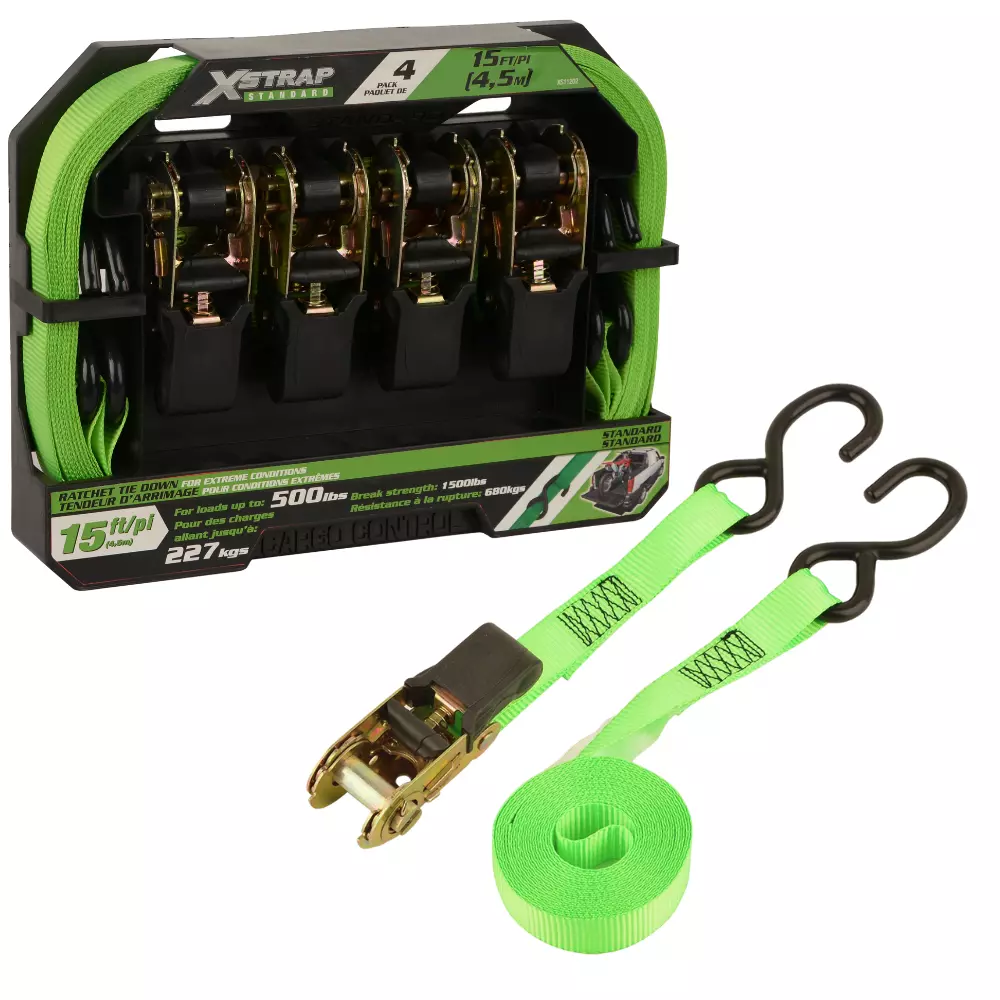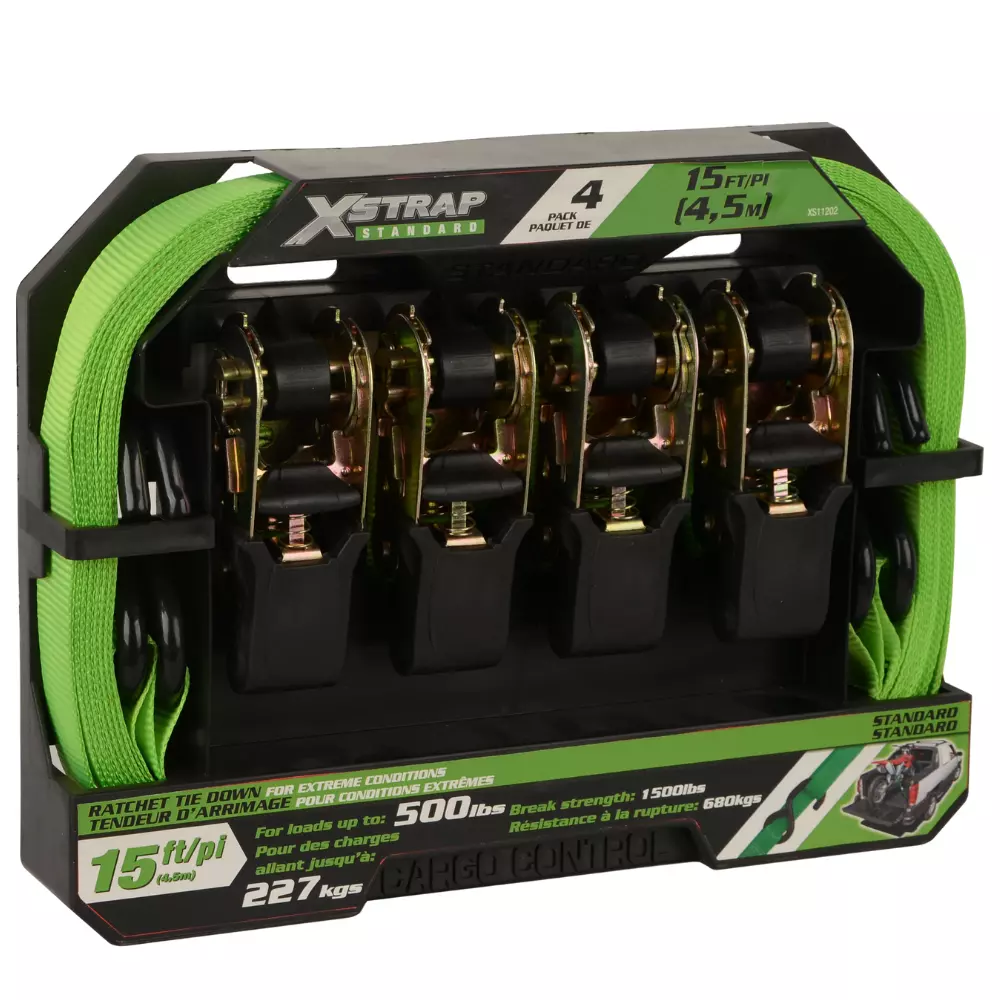 Набір стяжних ременів з храповим механізмом для кріплення вантажу 4 шт. 25 мм х 4,5 м стропи з навантаженням 227 кг