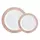 Набір тарілок пластикових круглі 12 шт, десертні 19 см і обідні 26 см, білі з рожево-золотистим візерунком