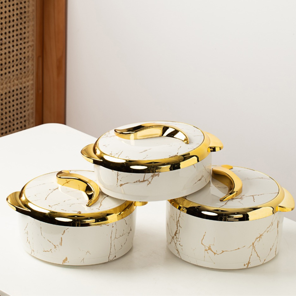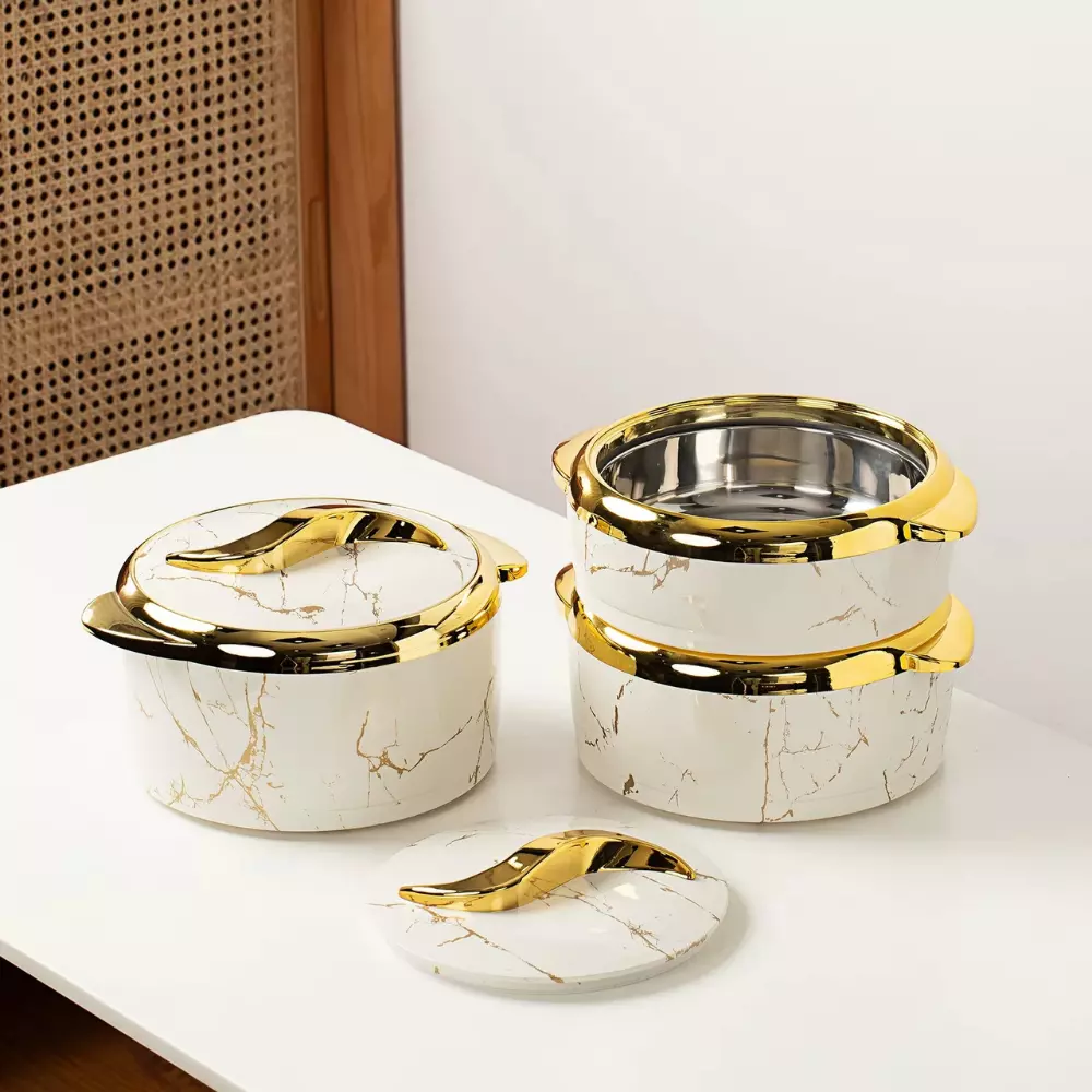 Контейнери оснащені щільними кришками зі зручними ручками, що дозволяє ефективно утримувати температуру вмісту. Набір чудово підходить для повсякденного використання вдома, а також для святкових заходів, банкетів і сімейних застіль.