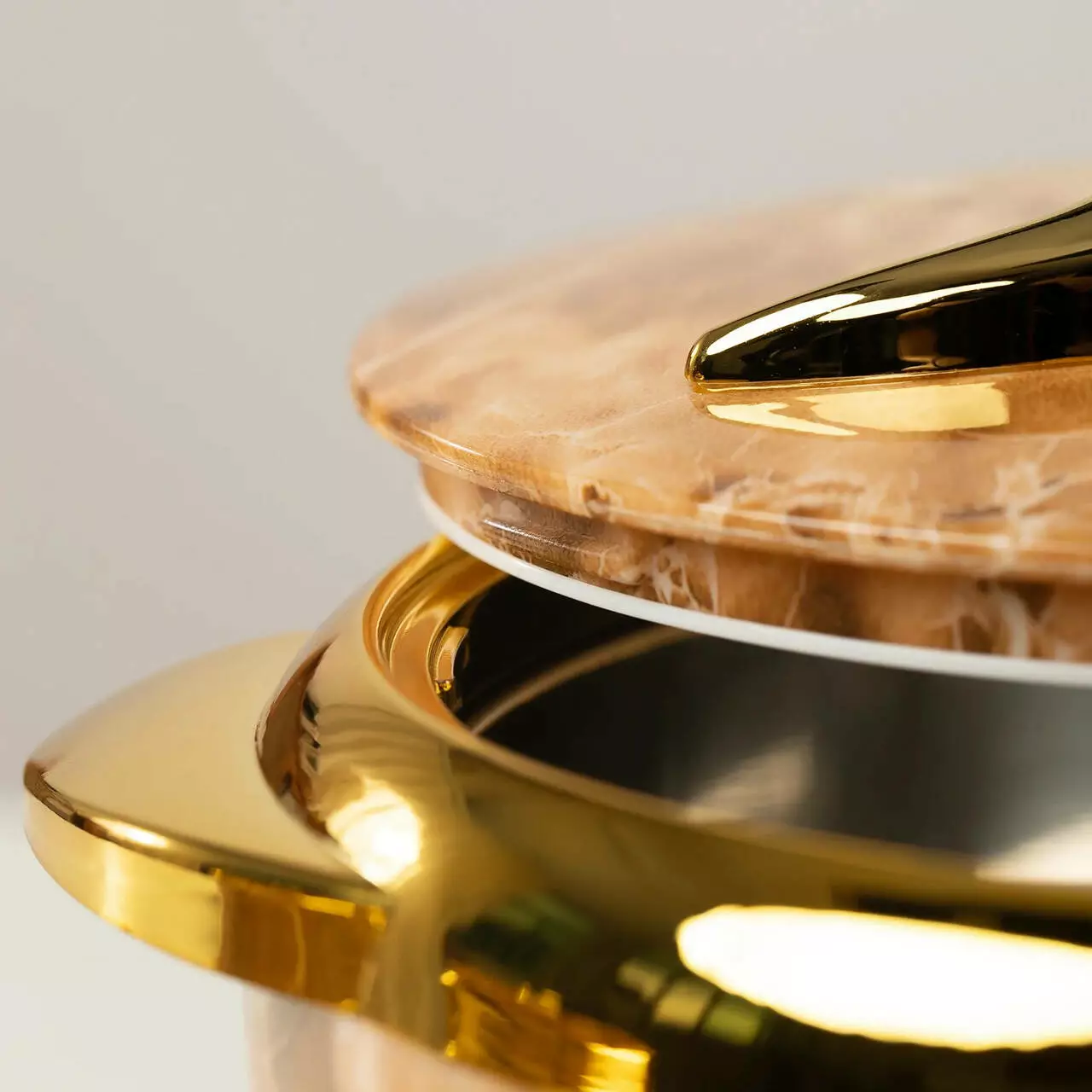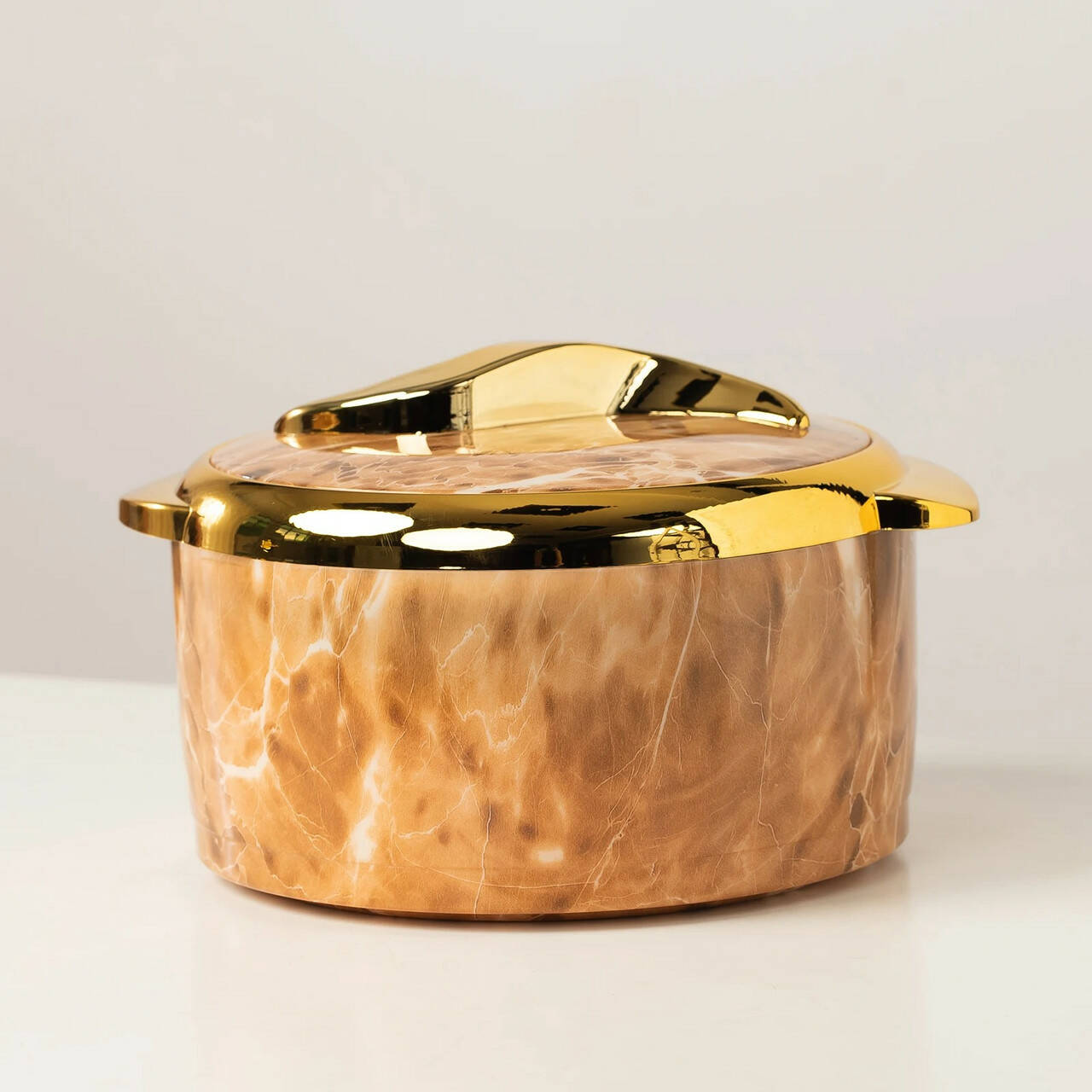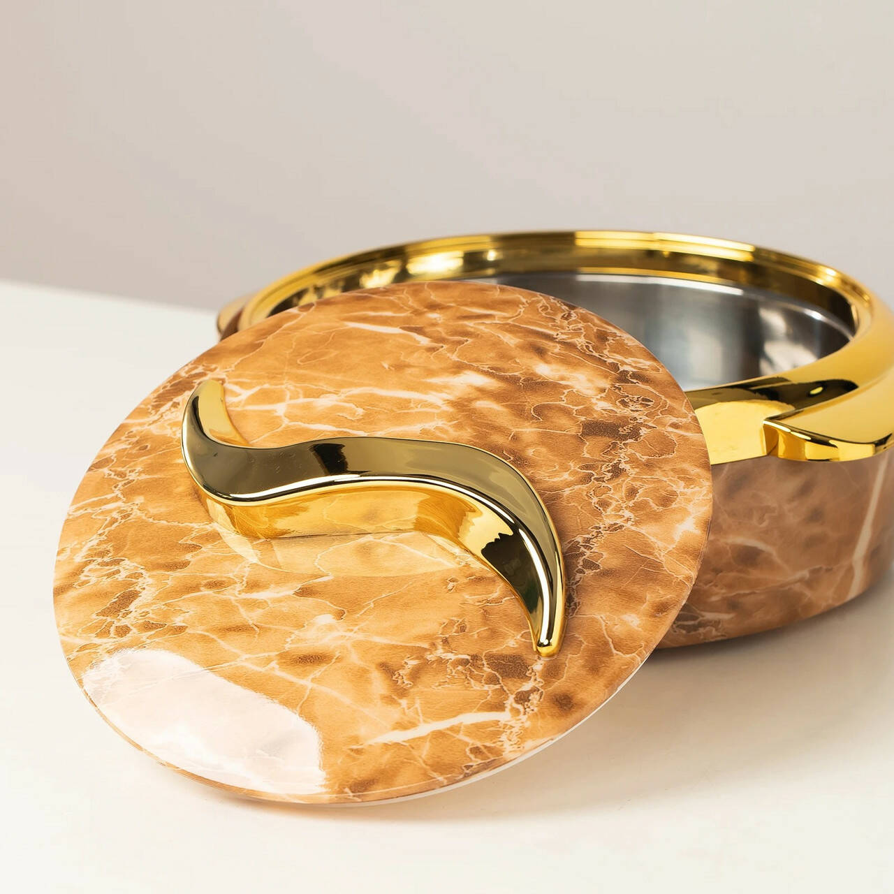 із мармуровим візерунком і декоративною золотистою окантовкою надає